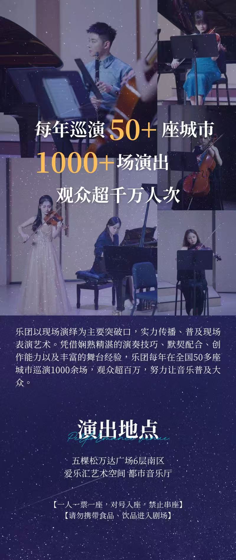 演出时间 2025-12-27至2026-01-03 演出场馆 五棵松·爱乐汇艺术空间·都市音乐厅 演出时长 以现场为准 儿童入场提示 儿童一律凭成人票入场 演出详情