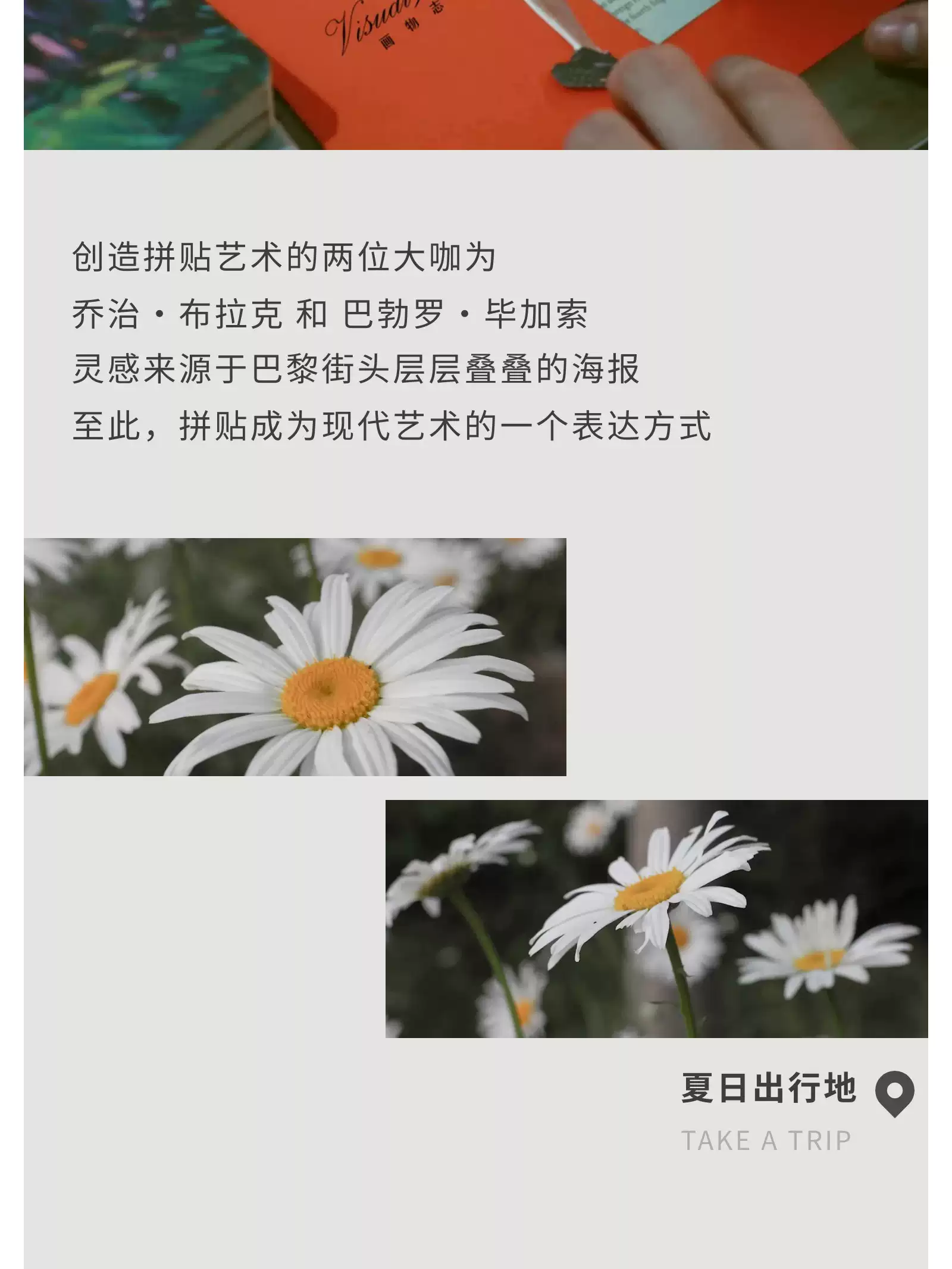 只要敢想象,人人都可以是抽象大师。有人说拼贴是随性而为的作品,心中要有一个大致的艺术主题,然后跟着内心,找素材,动手,在创作的过程中,大家会更多的更清晰明了自己的艺术另案,在拼贴过程中找到有趣的生动的艺术构造。