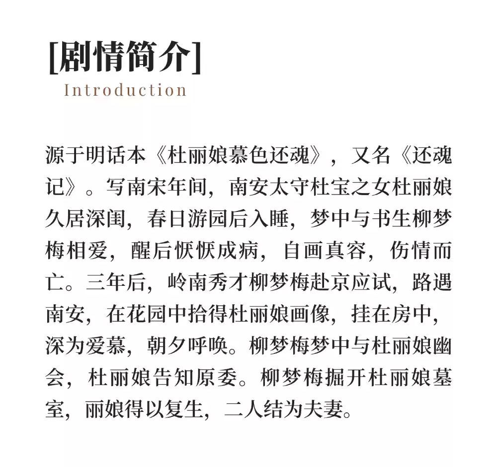 《牡丹亭》,是明代剧作家汤显祖创作的传奇(剧本),一段惊天动地跨越生死的爱情故事,中国戏曲史上的巅峰之作,一个城市和一个国家的文化精粹。