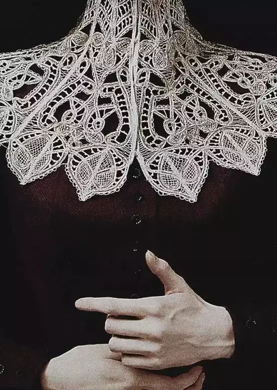 如今,棒槌蕾丝作为一种很贵的工艺,受到了高级定制服装的追捧。它既可以小面积的作为装饰运用于领口、袖口、门襟...也可以大面积地单独使用。同时,它也可以作为单独的艺术作品,记录往昔岁月的美好与辉煌。