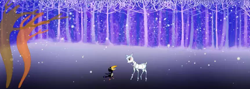九色鹿为了保护森林和小动物不受伤害,宁愿牺牲自己,走出了森林......