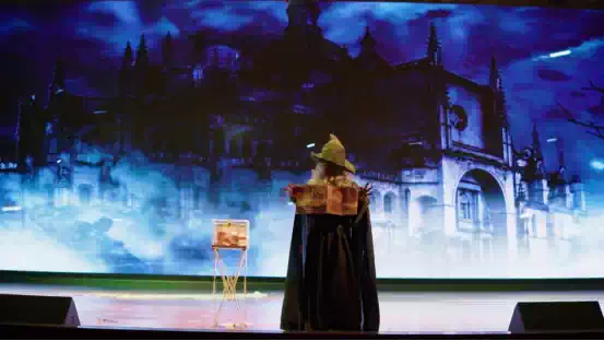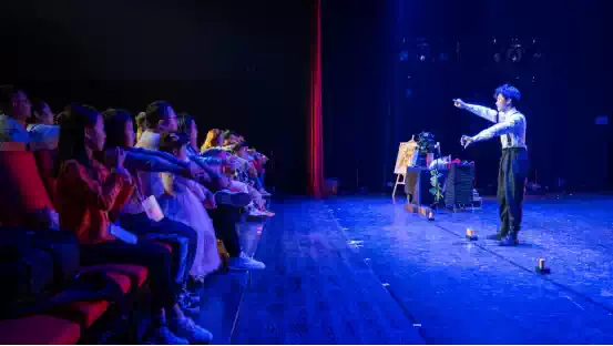 而来到《魔法学院》现场,在这里魔术师将带领现场的观众走进魔术的世界,一起在学院里面学习成长,给你和孩子打造独一无二的亲子互动奇妙魔法之旅。