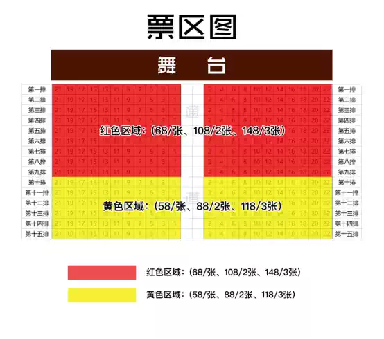 票面票面价:¥50/¥68/¥88/¥108/¥118/¥148