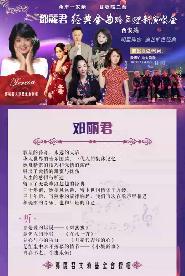 2021邓丽君经典金曲演唱会《甜蜜蜜》即将登陆西安音乐厅交响大厅,让我们走进剧场,感受爱与温暖!