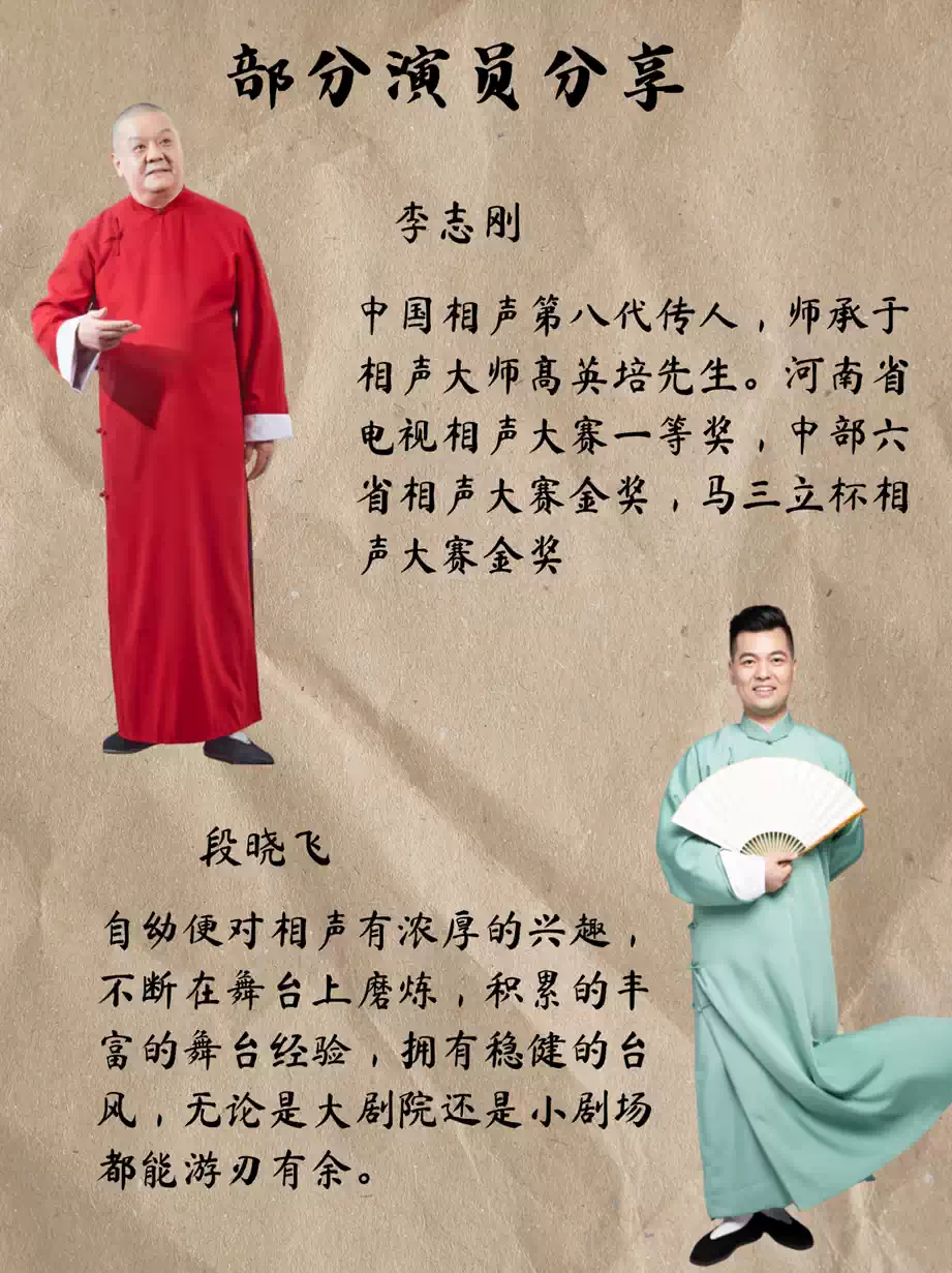 段晓飞:自幼便对相声有浓厚的兴趣,不断在舞台上磨炼,积累的丰富的舞台经验,拥有稳健的台风,无论是大剧院还是小剧场都能游刃有余。
