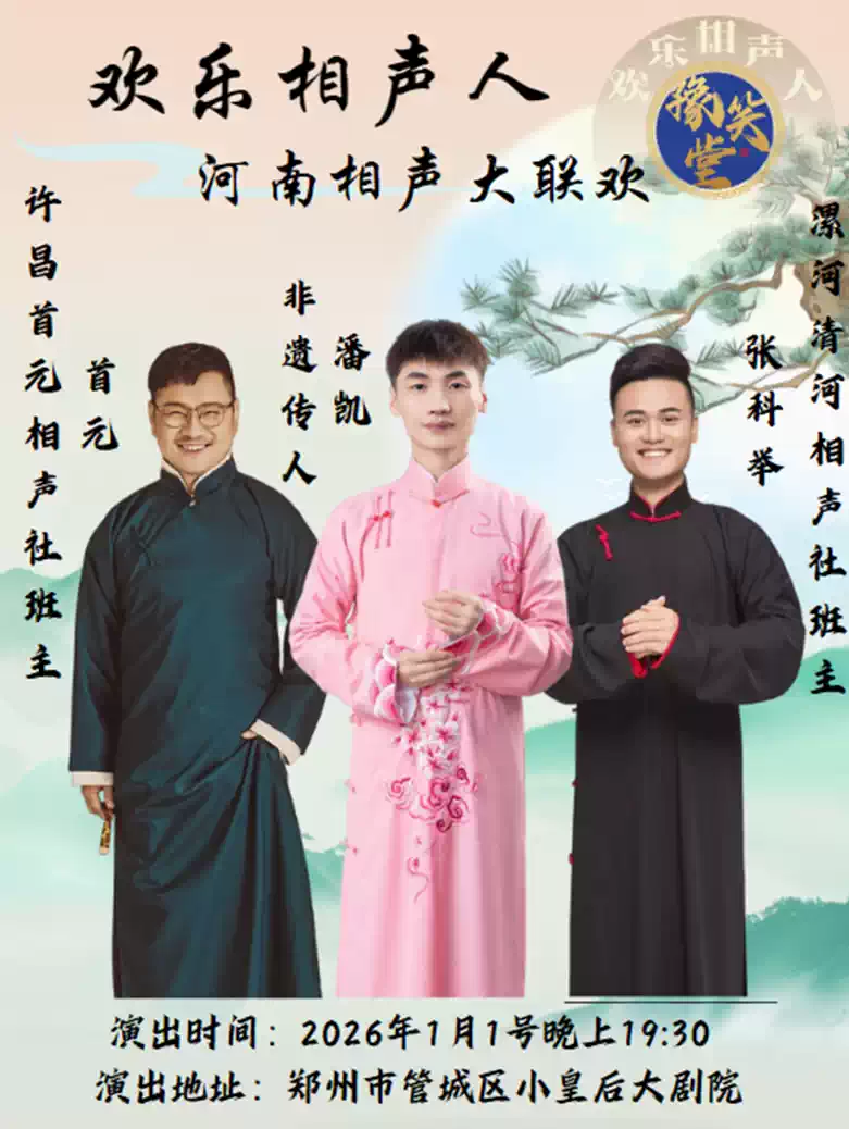 2026年1月1日晚19:30,郑州市管城回族区小皇后大剧院,诚邀您一同走进这场相声的欢乐盛宴。让我们在欢声笑语中,共同迎接新的一年,感受相声艺术带来的独特魅力,留下一段美好的回忆!