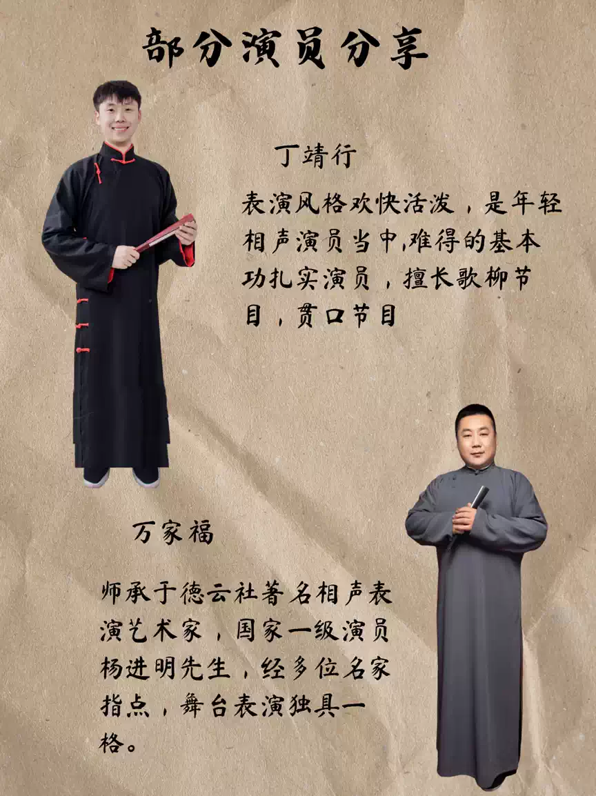 万家福:师承于德云社著名相声表演艺术家,国家一级演员杨进明先生,经多位名家指点,舞台表演独具一格。