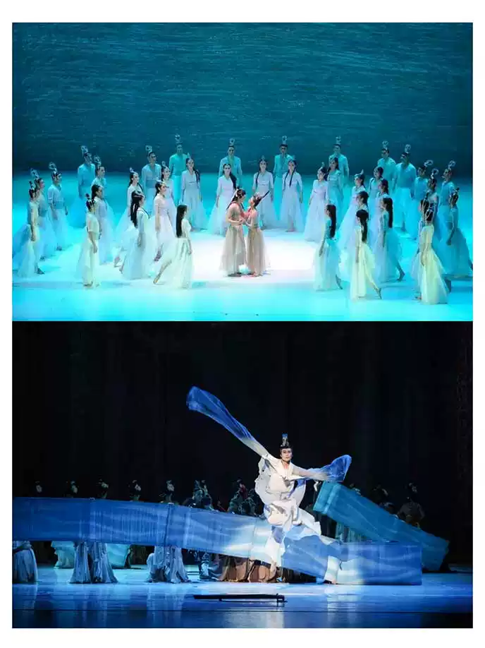 为了展现甄宓的绝美身姿,整台舞剧有大量的水袖舞蹈。