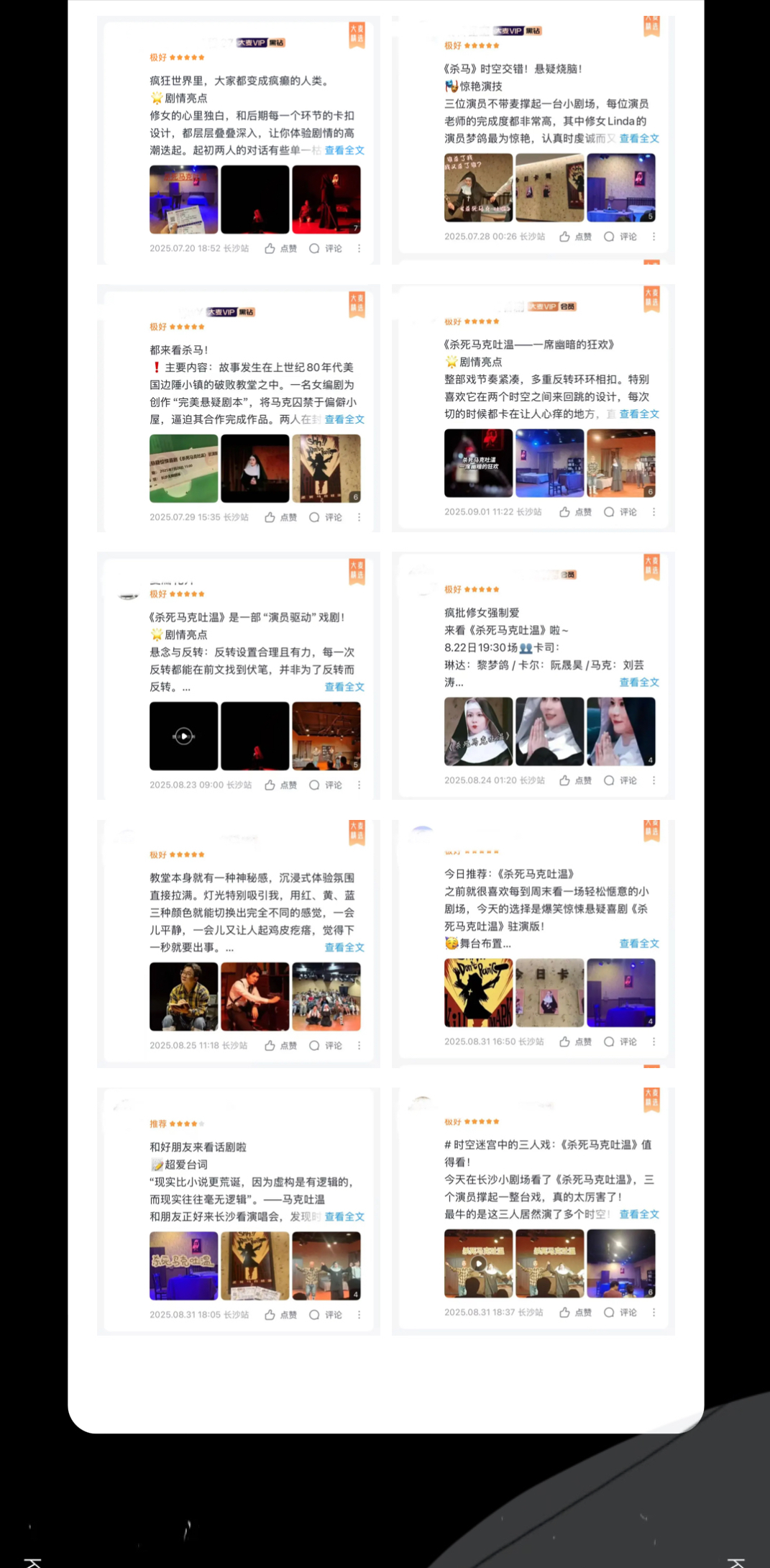 金杯银杯不如观众的口碑,作为靠谱儿戏剧工作坊的经典剧目,《杀死马克吐温》的每一次演出,都收获了无数观众的超高口碑,豆瓣评分至今保持在8.1分,这在长沙本土作品中并不多见,所以我们不能错过!