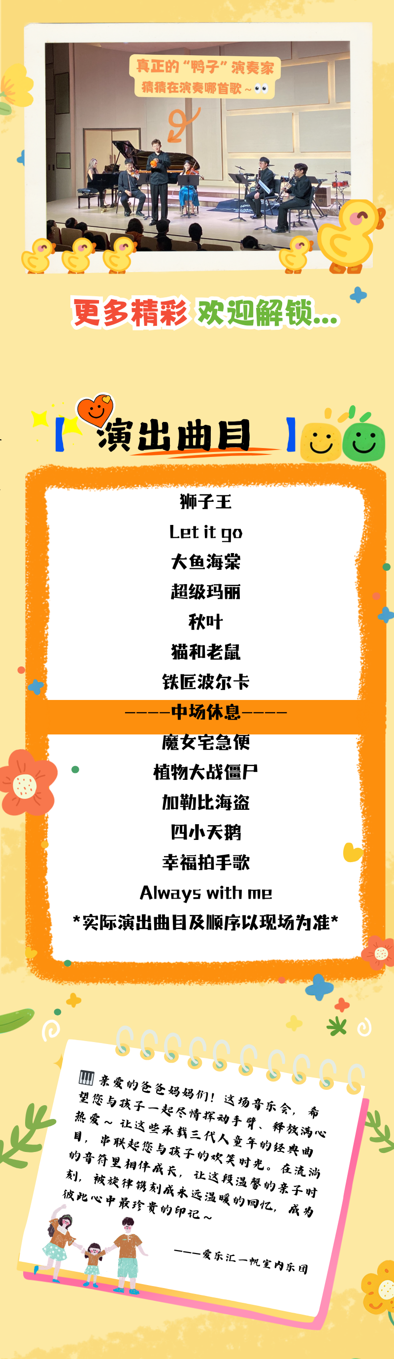 演出时间 2025-12-27 星期六 10:30 演出场馆 五棵松·爱乐汇艺术空间·都市音乐厅 演出时长 以现场为准 儿童入场提示 儿童一律凭成人票入场 演出详情
