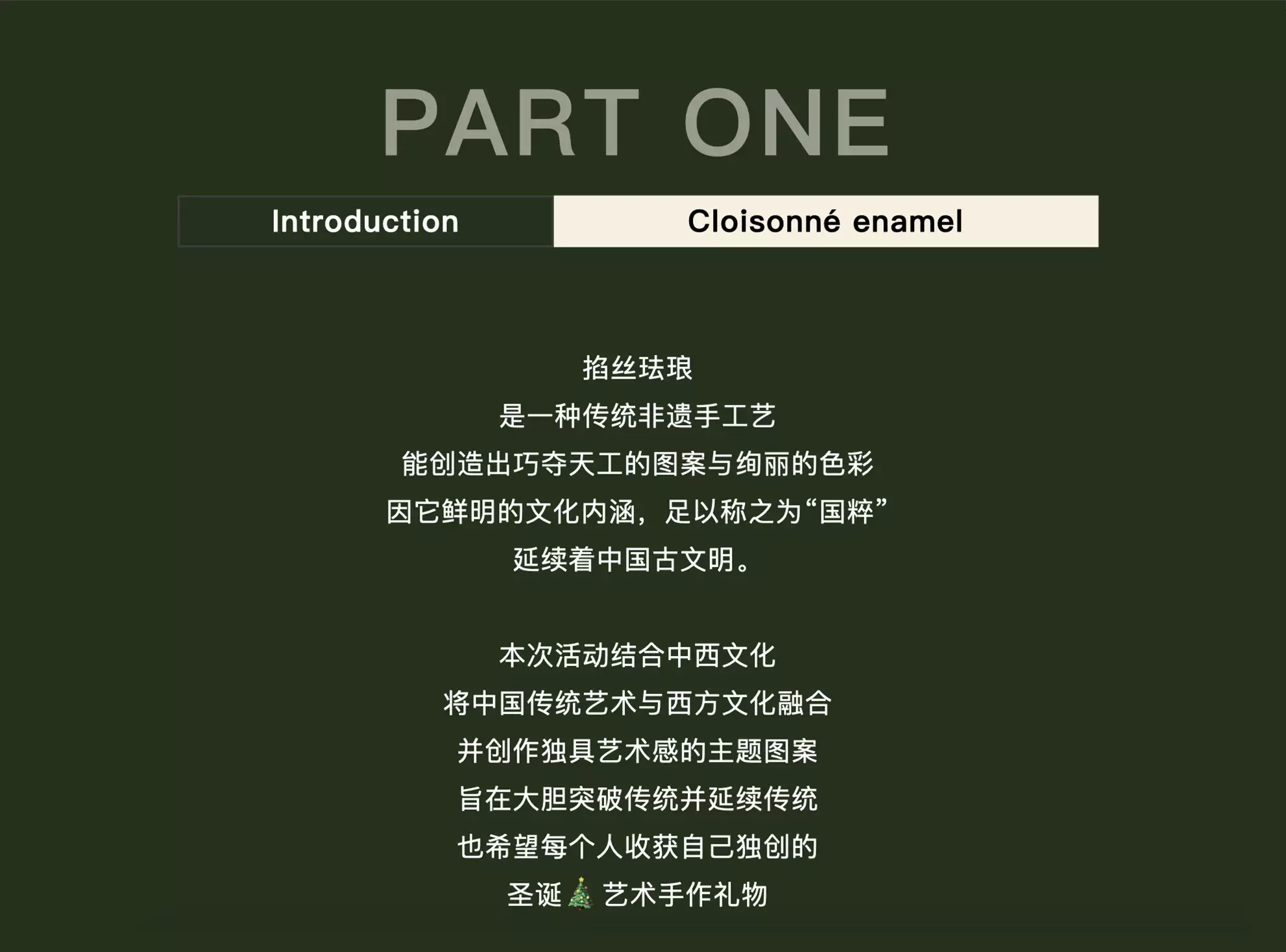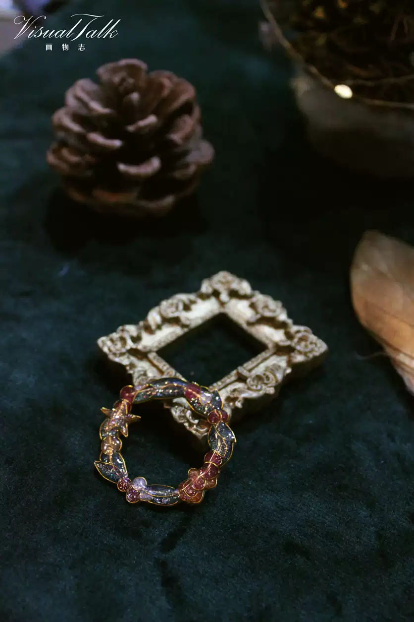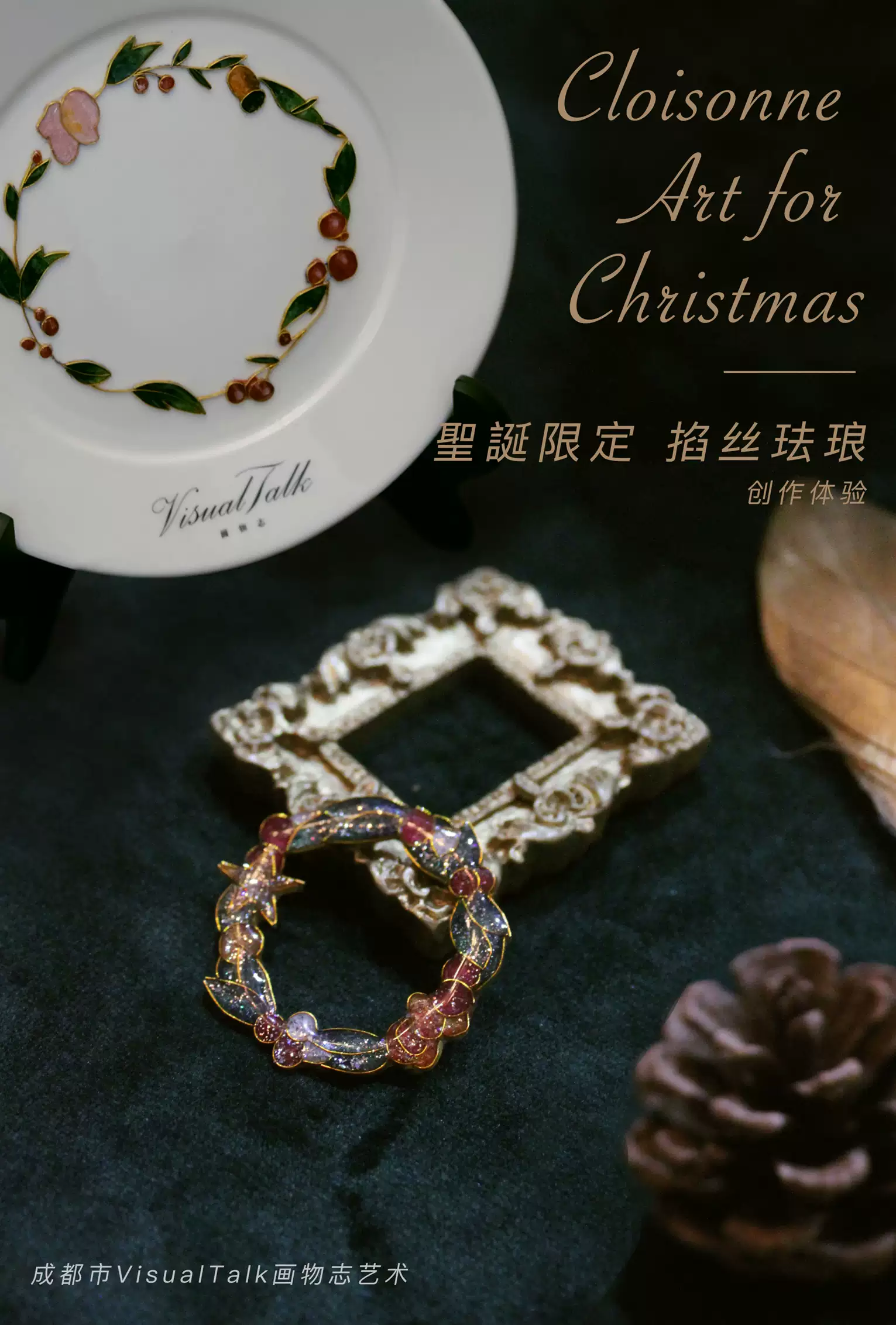 能在物件上创造出巧夺天工的图案与绚丽的颜色。其制作一般在金、铜胎上以金丝或铜丝掐出图案的轮廓并填上各种颜色。古代人习惯将附着在陶或者瓷胎表面的称“釉 ”,附着在建筑瓦上的称“琉璃”,而附着在金属表面的则被称为“珐琅”。掐丝珐琅巧夺天工的图案与绚丽的颜色带着鲜明的文化内涵,足以称它为国宝“京”粹。珐琅器属皇帝专用,延续着中国历代的文明文化,它被列入第一批国家级非物质文化遗产。VisualTalk画物志艺术将开展一次Workshop。我们将学习该工艺在杯垫上进行图案创造,或是创作一款精美的胸针,带大家在短时间内感受非遗文化的精湛技艺。