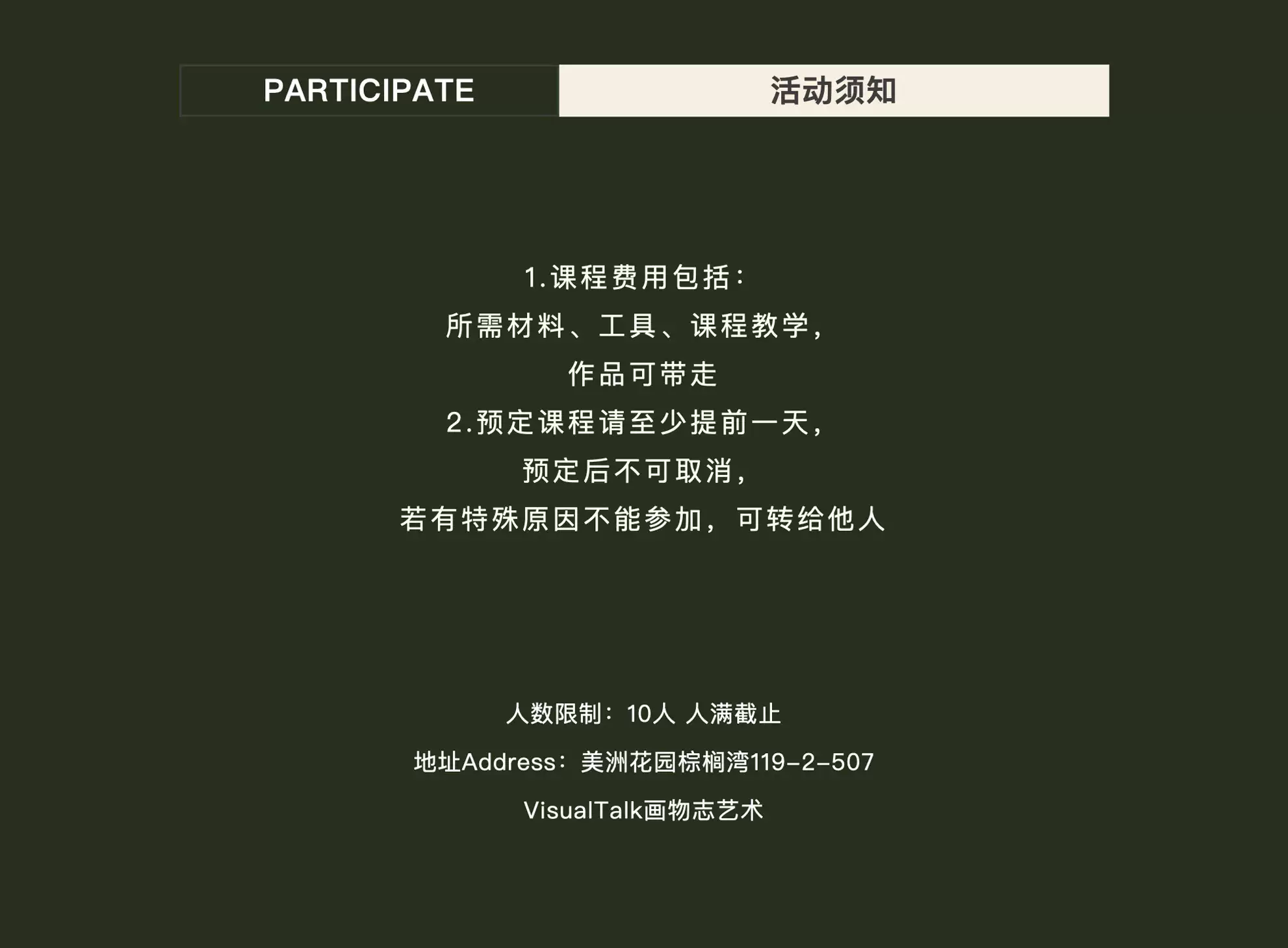 1.课程费用包括:所需工具,课程教学、作品可带走;