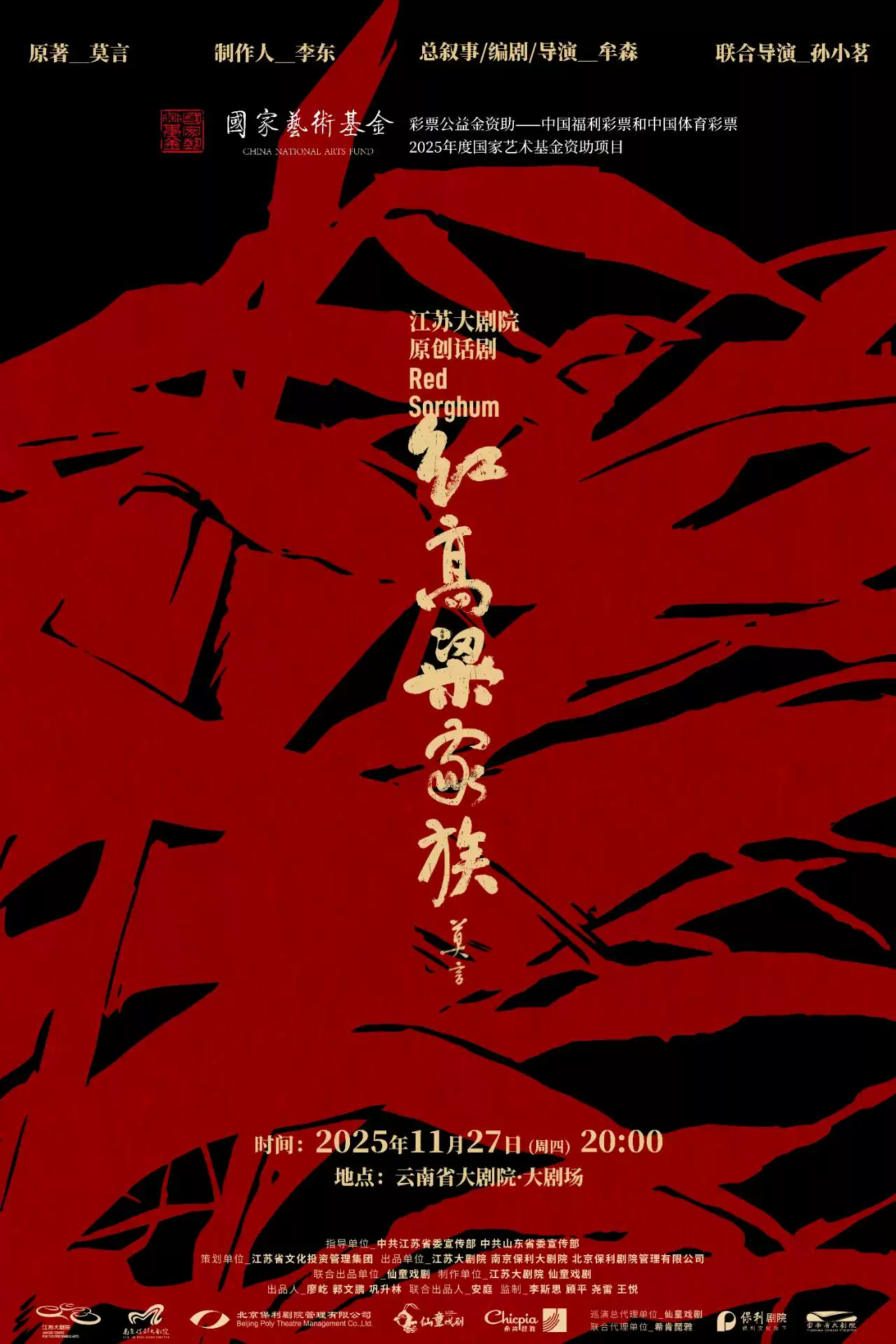 5月27日至28日走进云南省大剧院,《红高粱家族》昆明站我们不见不散。