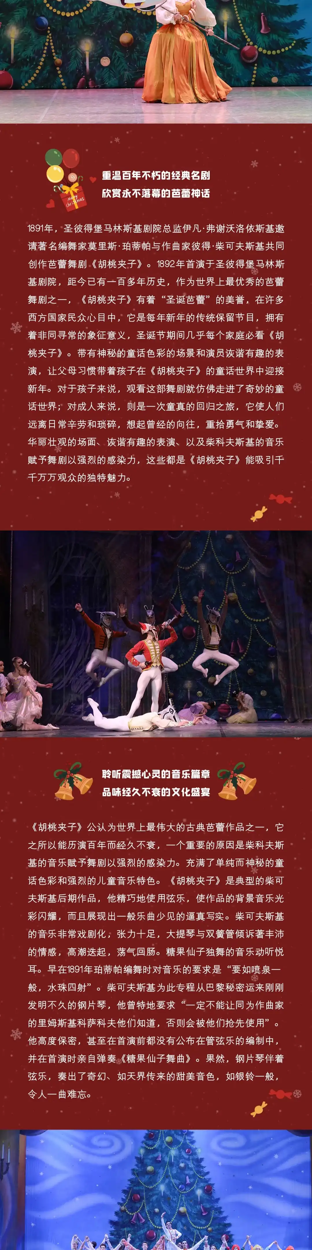 胡桃夹子芭蕾舞也会让观众感到兴奋,尤其是给年轻的观众一种喜悦的心情。因此胡桃夹子芭蕾舞剧是美秒的圣诞故事,充满了魔法,冒险和浪漫。题材背景充满阳光,鼓舞人心。