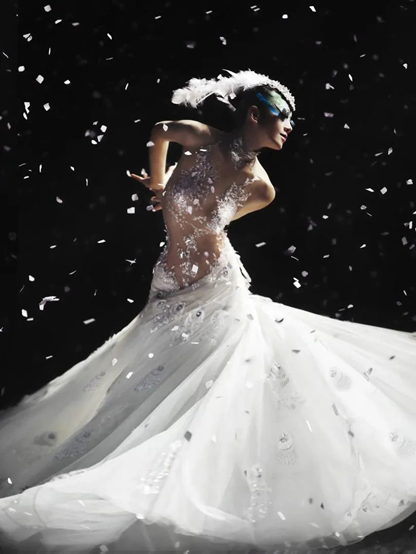 作为特别出演,杨丽萍亲自参演“冬”之篇章,在春夏秋冬的四季轮回中,呈现万物凋零、一片刹寂之时,孔雀迎雪而舞、涅槃重生的生命叩问之美。