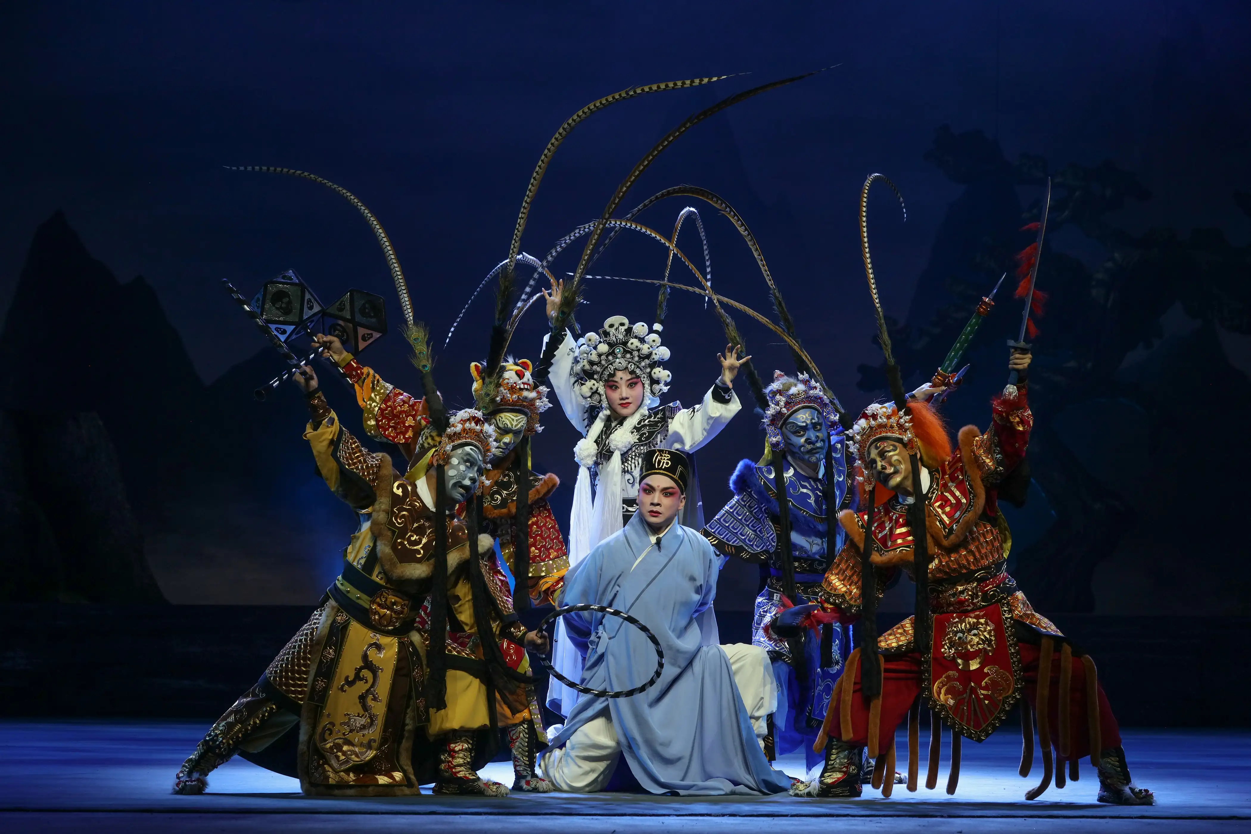 2025 年,浙江中月婺剧团以破界之姿,将千年非遗婺剧与未来视界深度融合,重磅推出先锋钜献——新概念婺剧《孙悟空三打白骨精》。这场演出并非传统意义上的戏曲呈现,而是一场非遗传承的“破圈”实验,它让经典神话挣脱时空束缚,以全新先锋形态震撼登场。