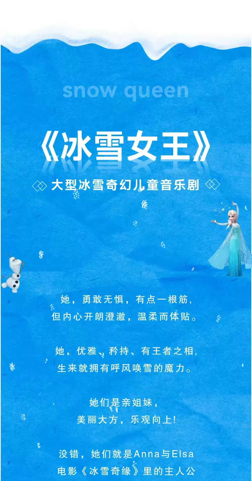 风靡全球的冰雪女王一直以来都是每个女孩子梦想成为的样子,现在,冰雪女王的歌舞剧场版终于要来深圳啦!近距离接触冰雪女王的机会,哪个小朋友可以拒绝呢?