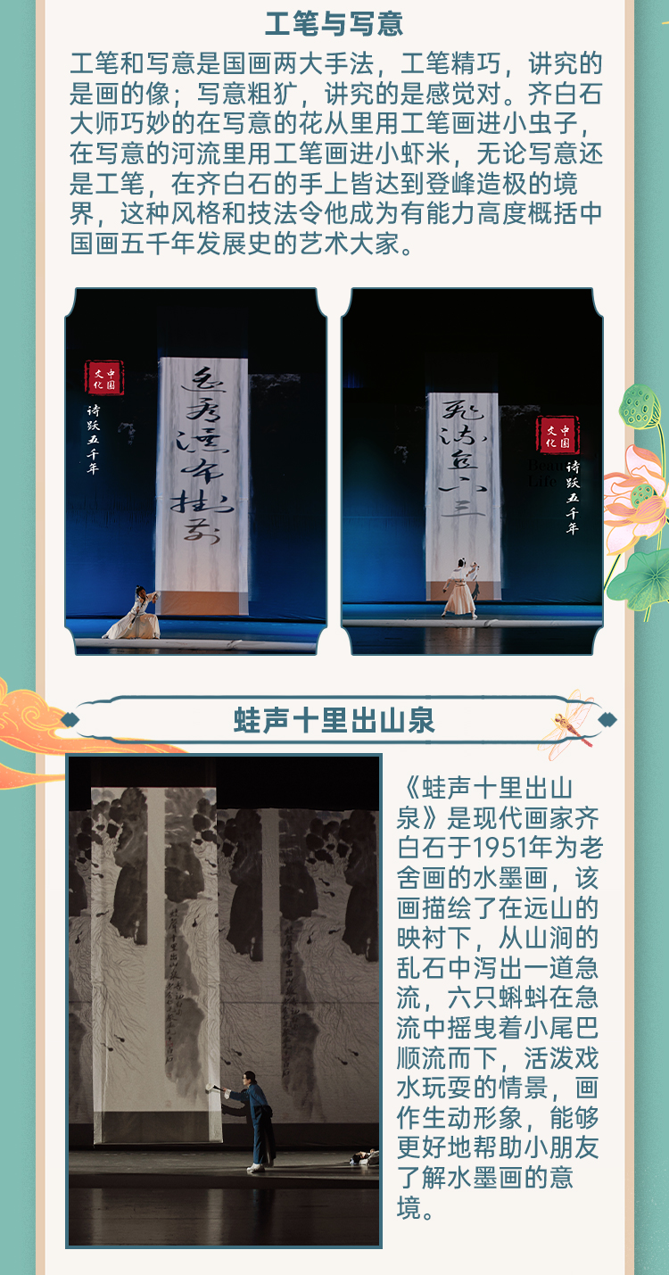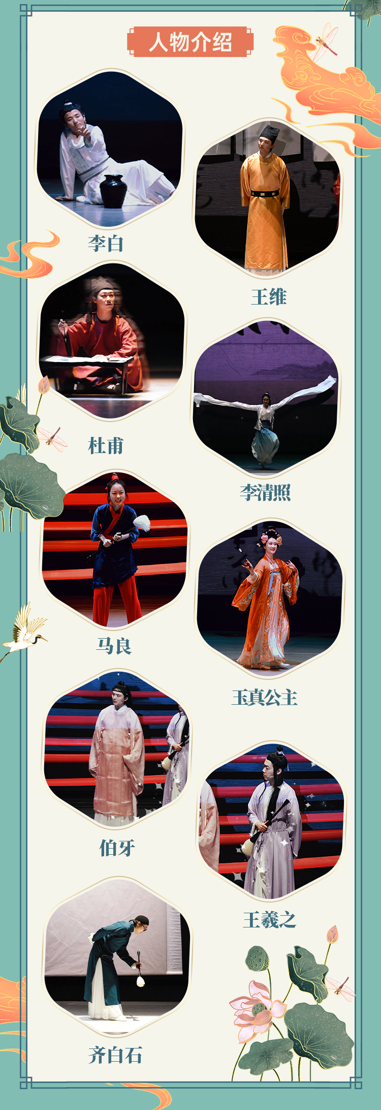 舞台上,更有多位古代名人大师穿梭相继登场,与音乐大家伯牙切磋琴技,与杜甫斗诗,与齐白石讨教画作秘法......一同展现多个朝代趣事。