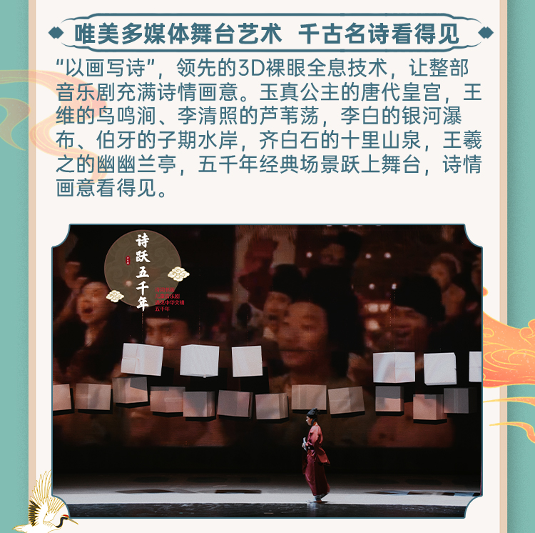 在诗乐古韵中,重现中华古代文明的盛况,在极致的沉浸式视听震撼中,体验传统文化的永恒魅力。