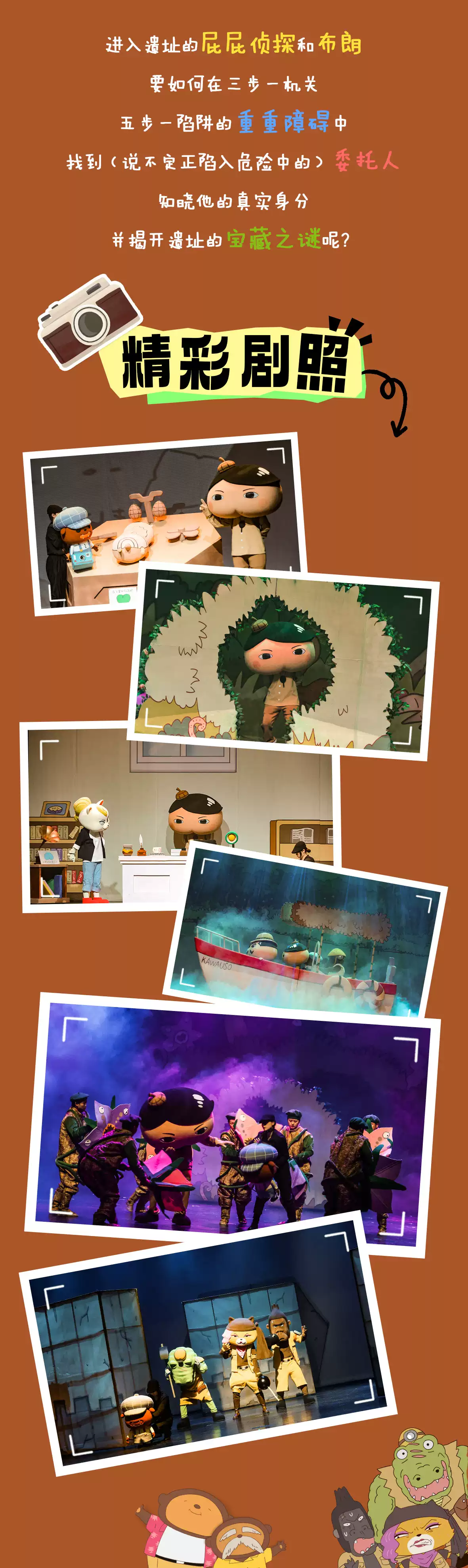 之所以那么受欢迎,自然和书中那些有趣的解密游戏分不开,而在这部舞台剧将原作中那些有意思的部分完美保留了下来,屁屁侦探将会用多媒体现场带领孩子们解谜,让观众们有机会参与到互动形式中来,相信一定更加有趣。
