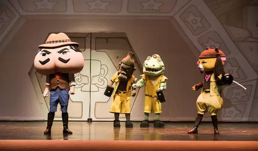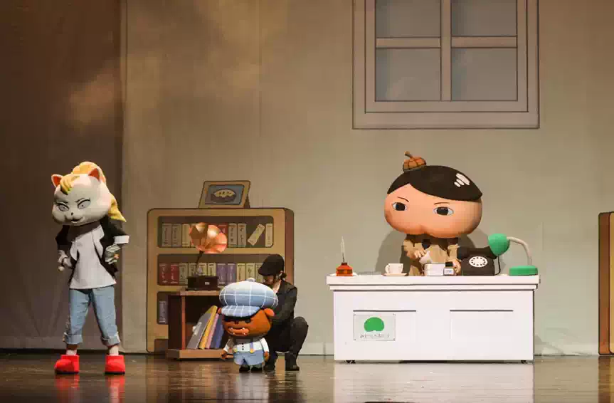 但在这部剧里,屁屁侦探会用多媒体现场带领孩子们解谜,让后排观众也有机会参与到互动形式中来。