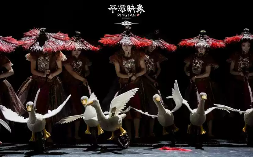 剧目以意象化的新东方美学作为审美理念,融合非遗传承,由两岸艺术家共创同演,造奇设幻,讲述了一个具有浓厚东方色彩的古典神话史诗,描绘了一幅用舞蹈作笔、以文化为墨的艺术画卷,呈现了一部两岸人文交流与融合的舞台巨作。