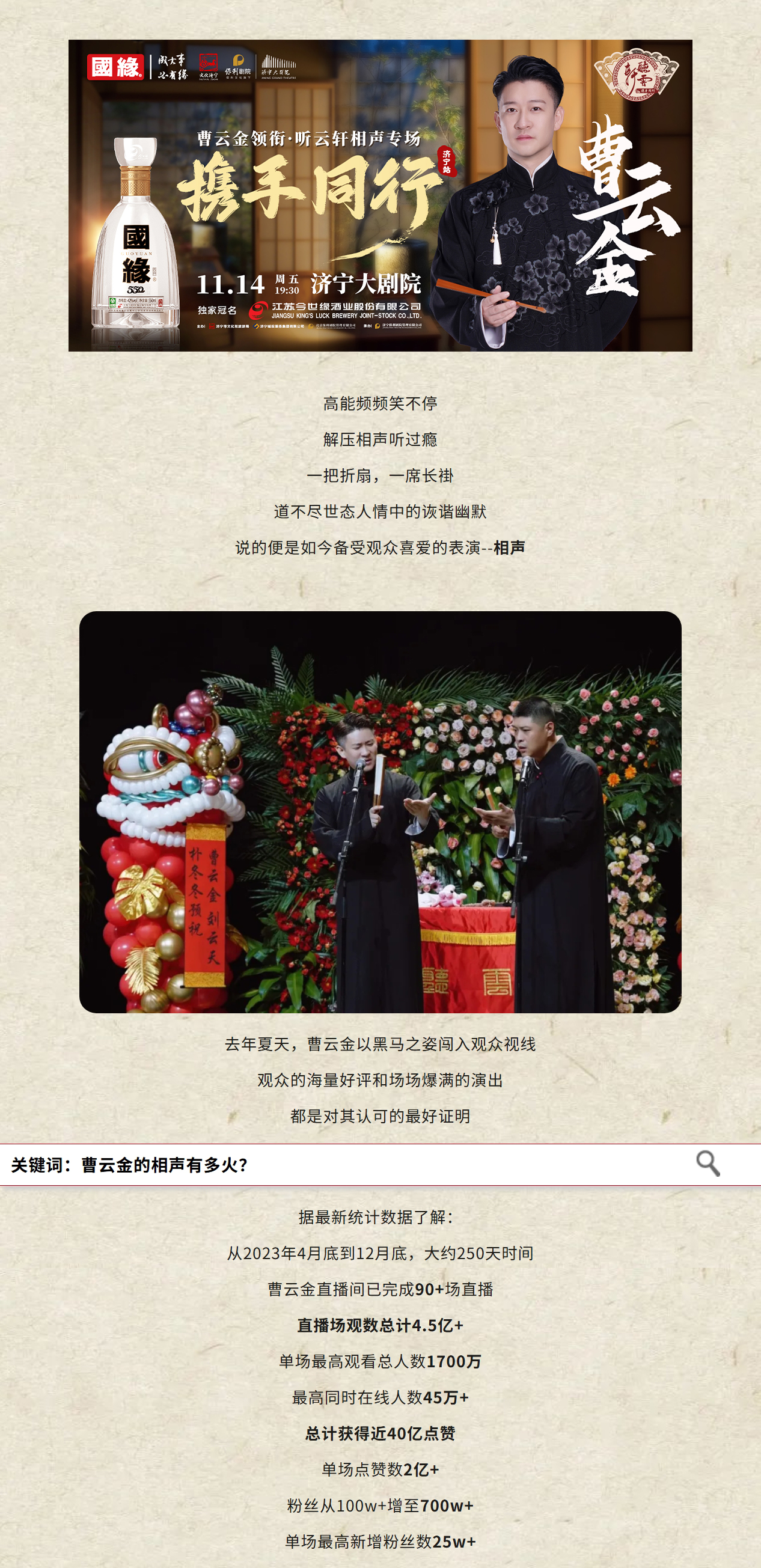 直播界相声第一人——曹云金,携听云轩的相声演员们开启全国巡演。