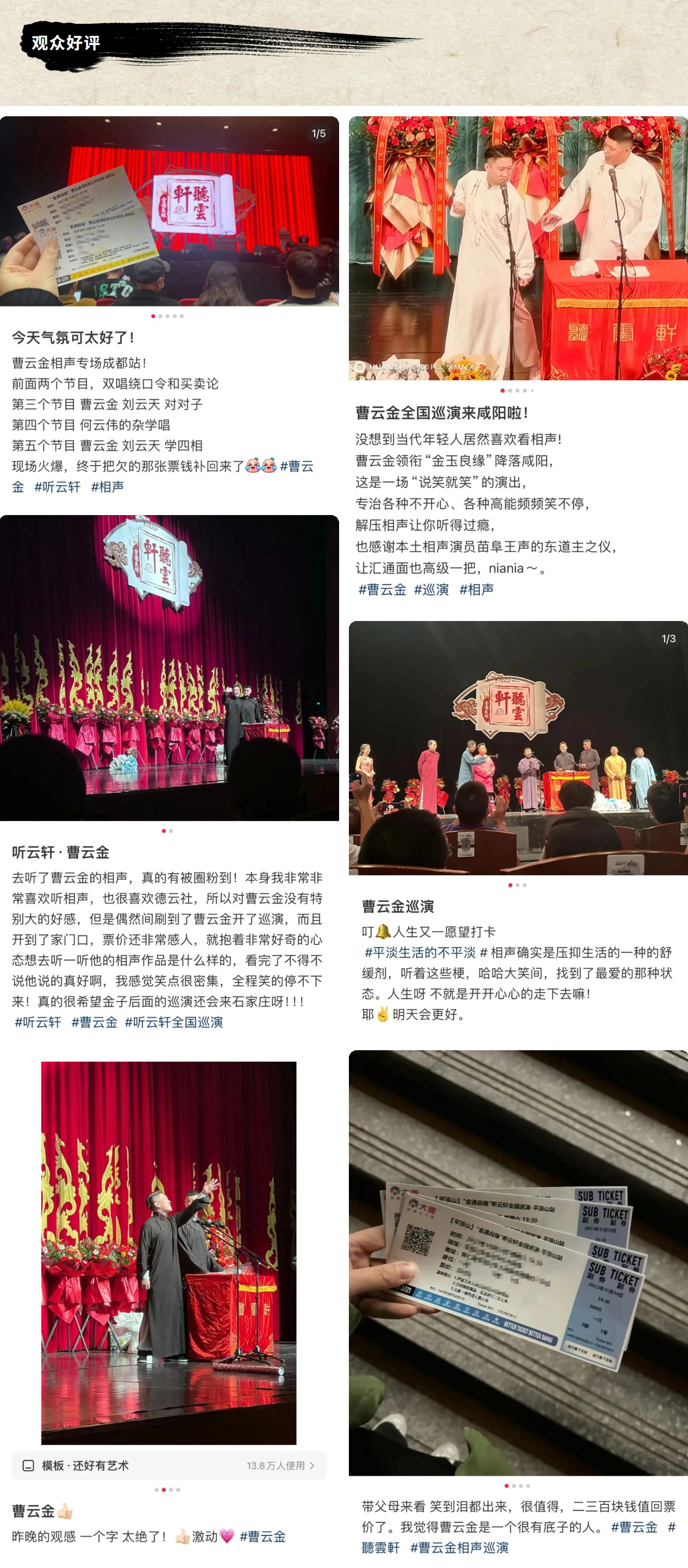 自2023年起,由曹云金领衔的听云轩开启了全国巡演,