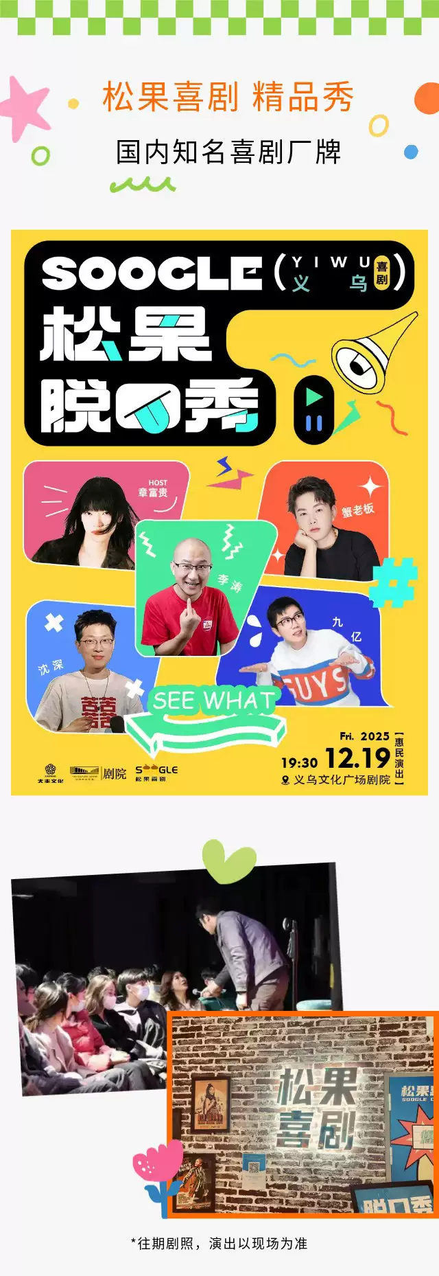 12月13日,【HI,LIVE】松果喜剧脱口秀专场邀你走进义乌文化广场剧院