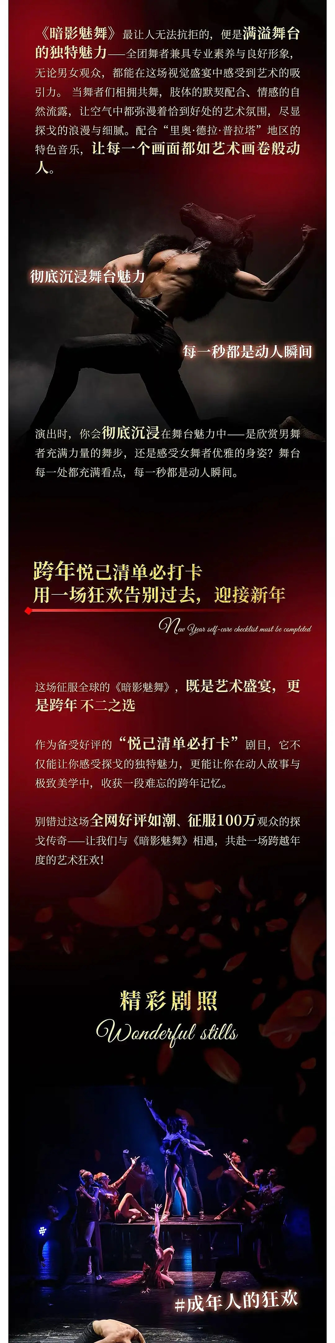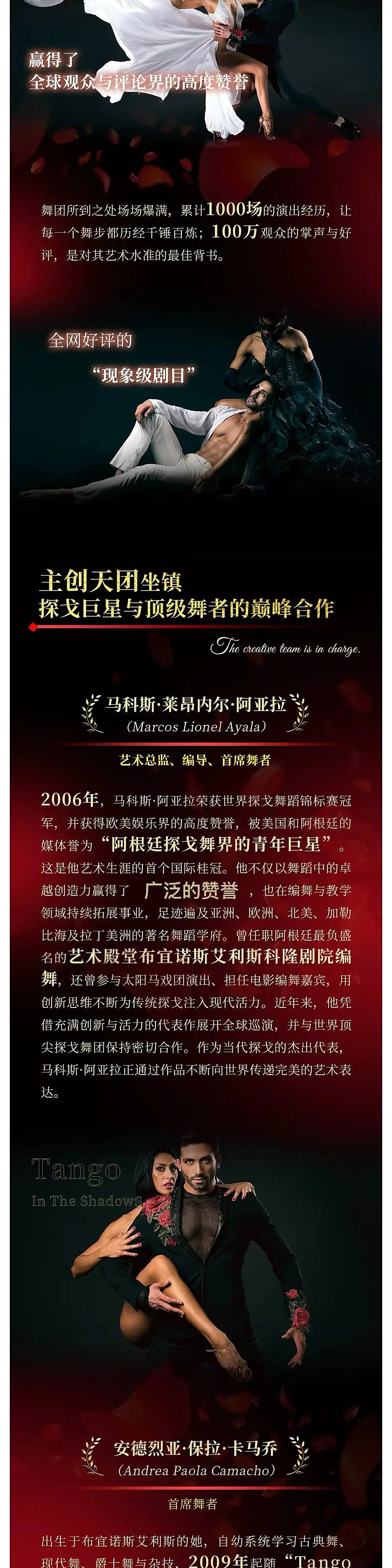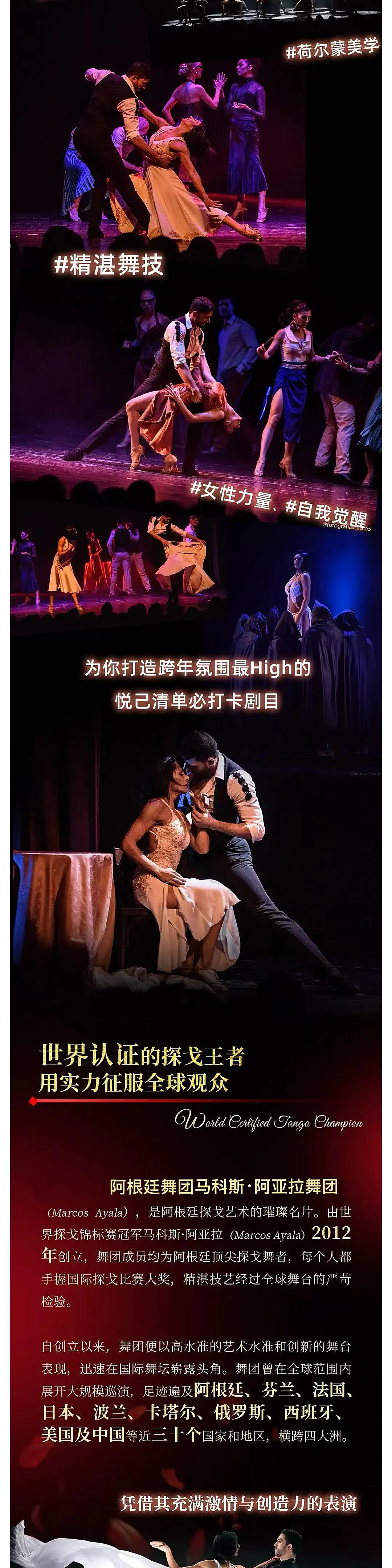 阿根廷国宝级探戈舞团打造,浪漫与神秘共舞,将雀跃的舞步成为心灵的主导!