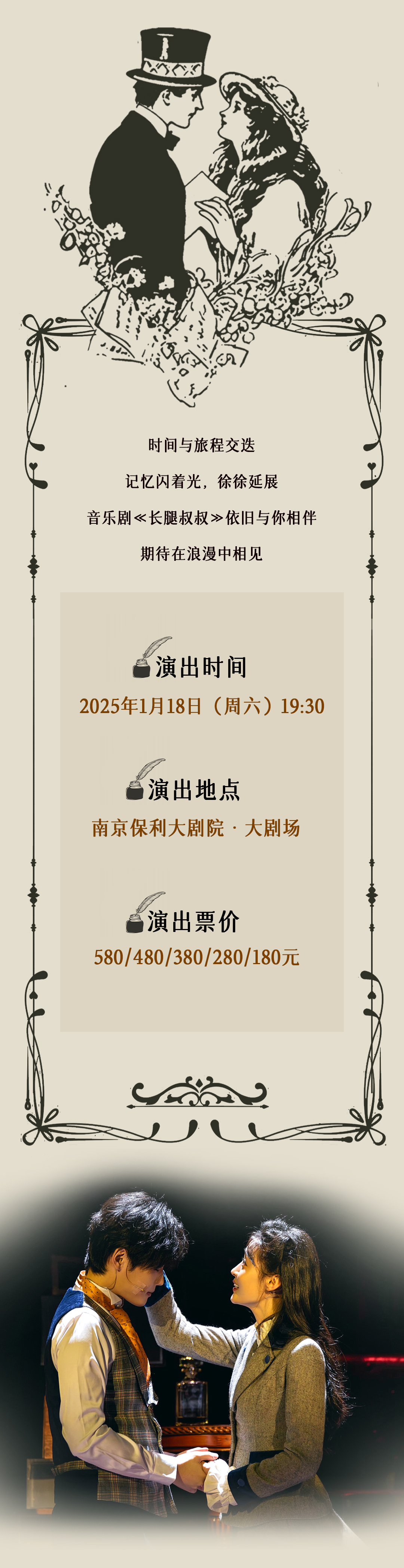 时间与旅程交迭,记忆闪着光,徐徐延展。2025年1月18日走进南京保利大剧院,音乐剧《长腿叔叔》期待与你相遇!