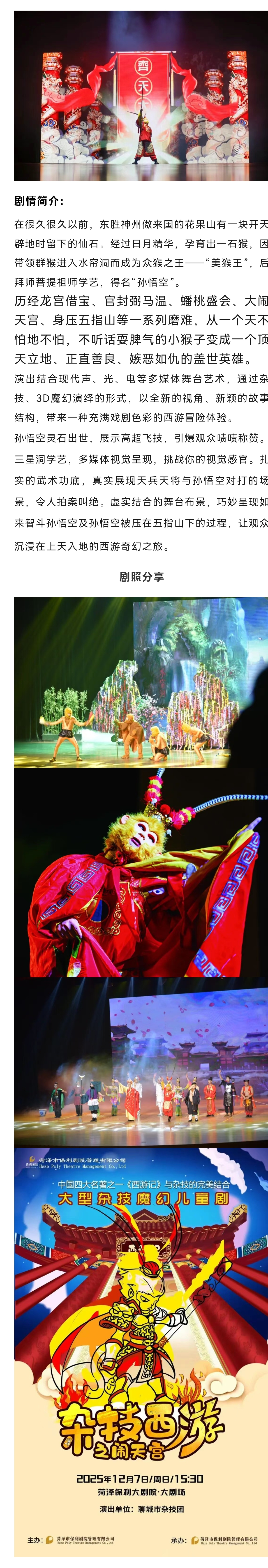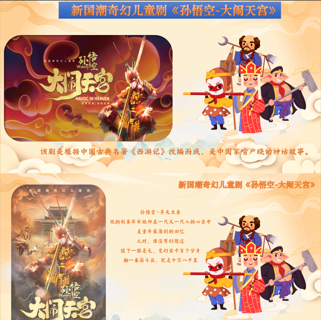 4月19日相约菏泽大剧院,在新国潮奇幻儿童剧《孙悟空--大闹天宫》菏泽站中,让我们一起穿越时空,重温经典英雄梦,感受孙悟空的英勇与智慧,共同见证中华文化的璀璨光辉!