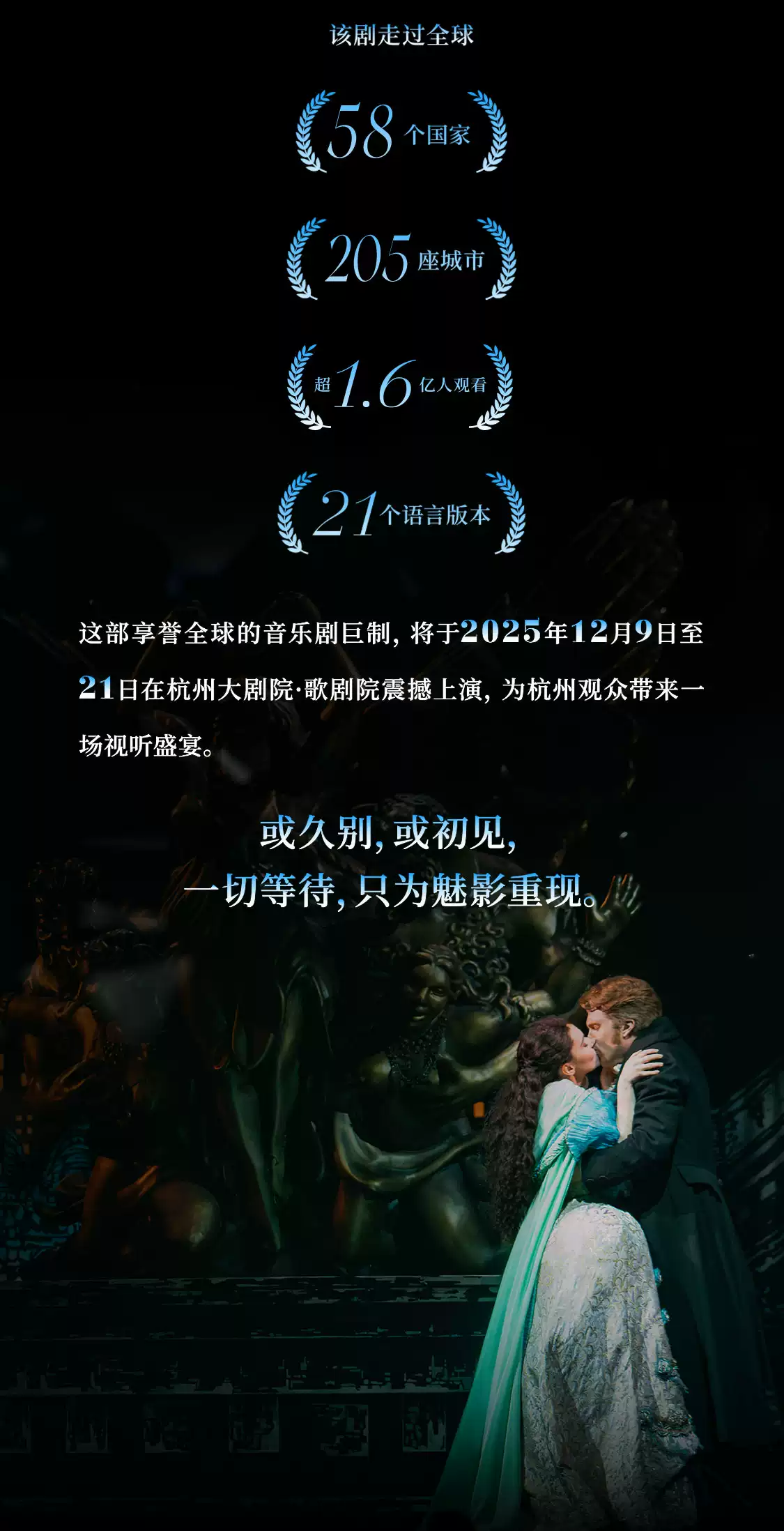 据悉,该剧自首演以来,便以其扣人心弦的故事情节、华丽的舞台布景和经典的音乐旋律,成为全球音乐剧迷心中的经典之作。它走过全球48个国家,196座城市,吸引了超过1.6亿观众,并被翻译成21种语言版本。