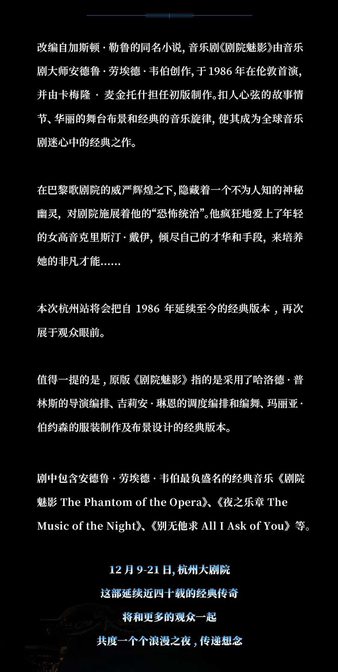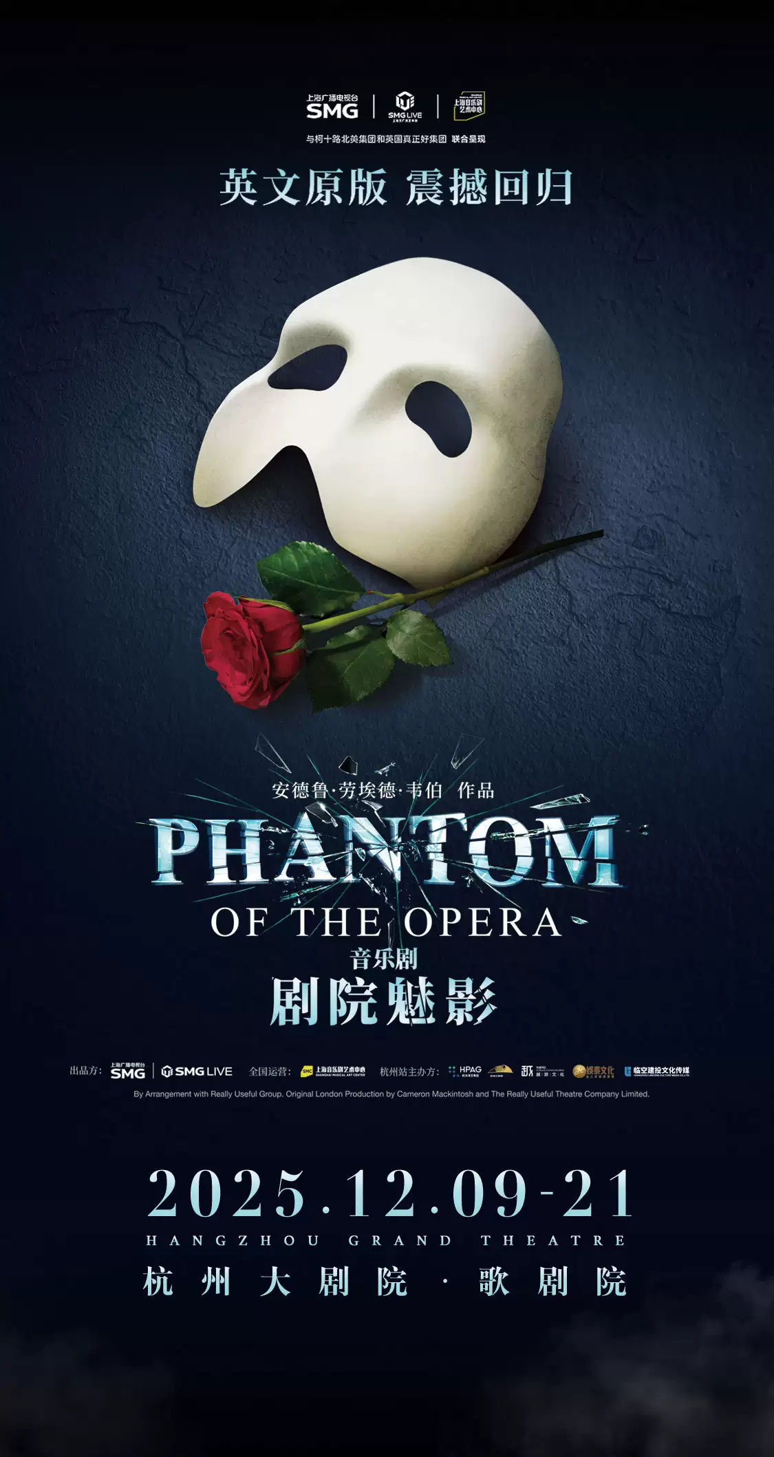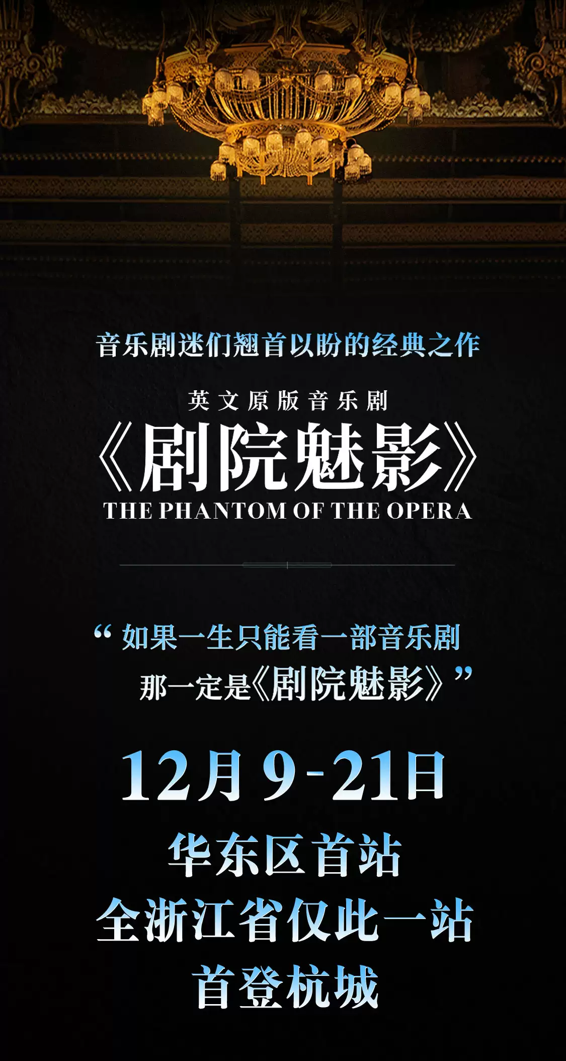 英文原版音乐剧《剧院魅影》,此生必看系列,12月9日至12月14日就在杭州大剧院歌剧院,我们不见不散!
