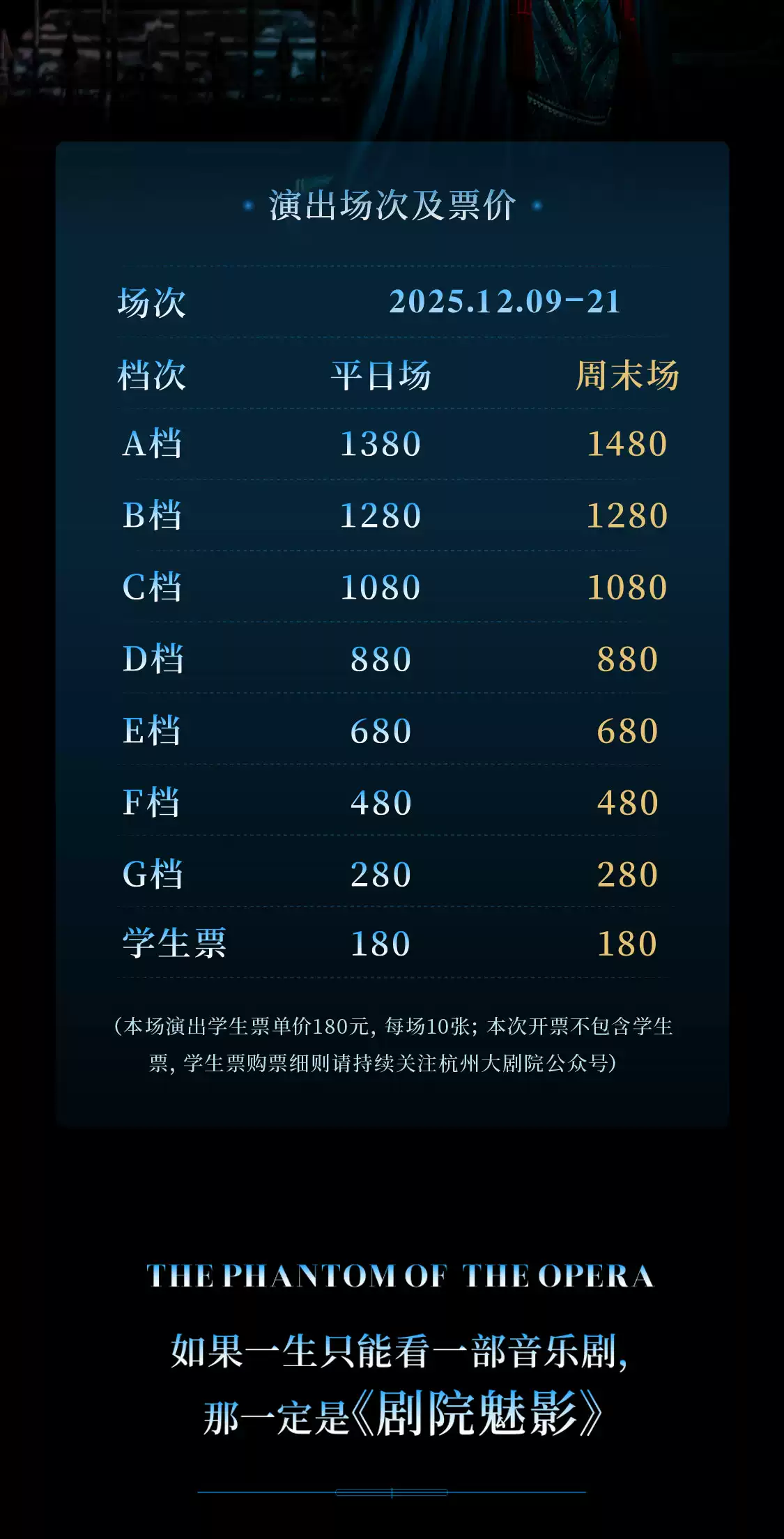 英文原版音乐剧《剧院魅影》终于要来杭州啦!这一次的演出是全英文原版、全卡司阵容、全沉浸舞美,12月9日至12月14日就在杭州大剧院歌剧院,年度音乐剧天花板带你度过一段美好的时光!