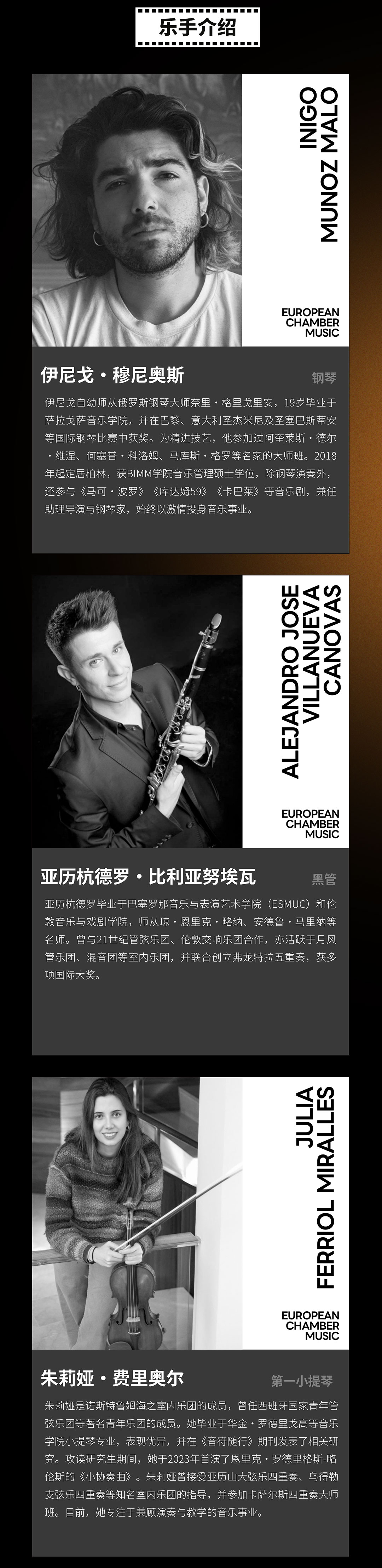 欧洲之声室内乐团高超的演奏水准完美适应着不同主题的演奏风格今年他们再次回到中国这次,电影与音乐又会迸发出怎样的火花呢?我们拭目以待!