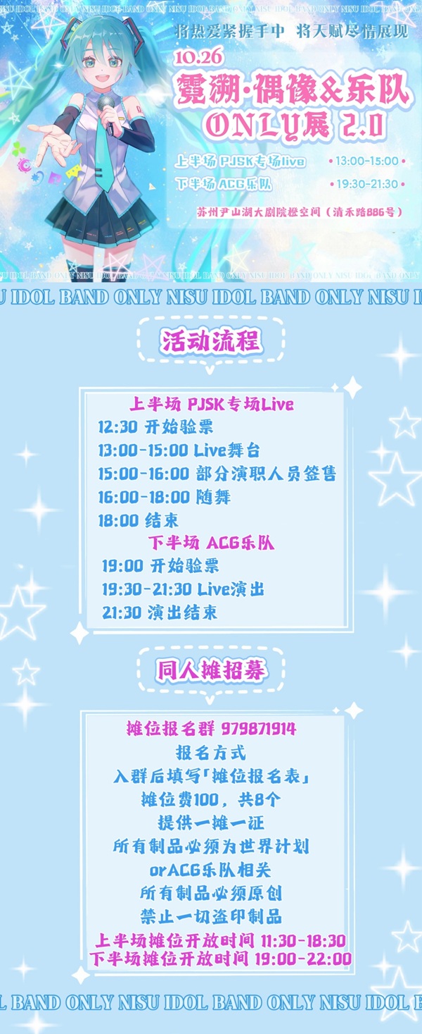 5月4日就在苏州尹山湖大剧院橙空间,苏州霓溯偶像&乐队only展邀你共赴二次元狂想,我们不见不散哦!