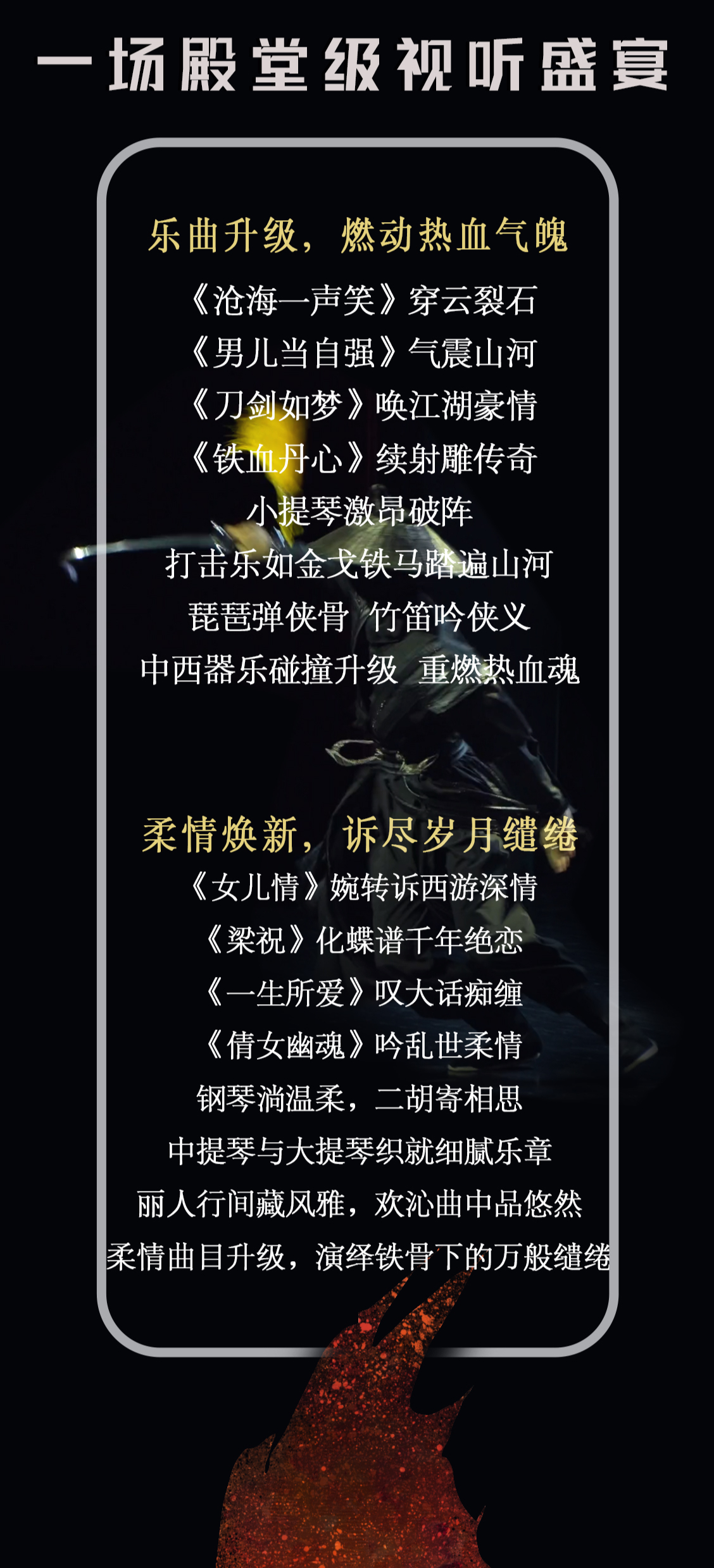 《铁血丹心》超燃之声传承音乐会不仅能让我们重温武侠文化的魅力,更能让我们感受到经典音乐的永恒价值,还让经典在传承中焕发出了新的光彩,继续陪伴我们走过漫长岁月。