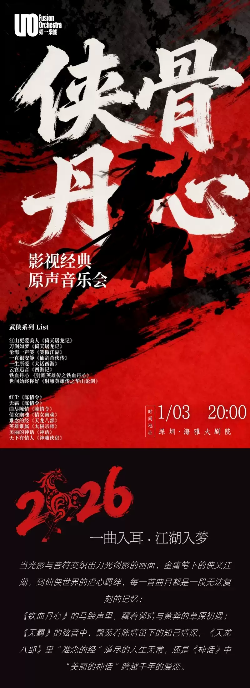 2025年7月20日,深圳侠骨丹心武侠国风音乐会与你相约深圳开心麻花红山剧场,邀您一曲入江湖,回味武侠梦!