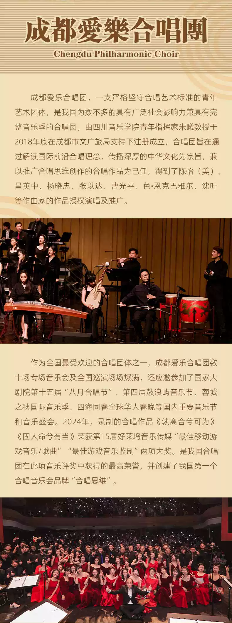 2025年8月24日,南京保利大剧院大剧场,成都爱乐合唱团带你感受《花样年华》经典国语电影专场音乐会!