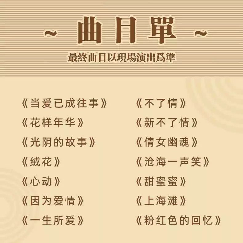 - 苏州致敬光辉岁月经典港乐歌曲演唱会门票