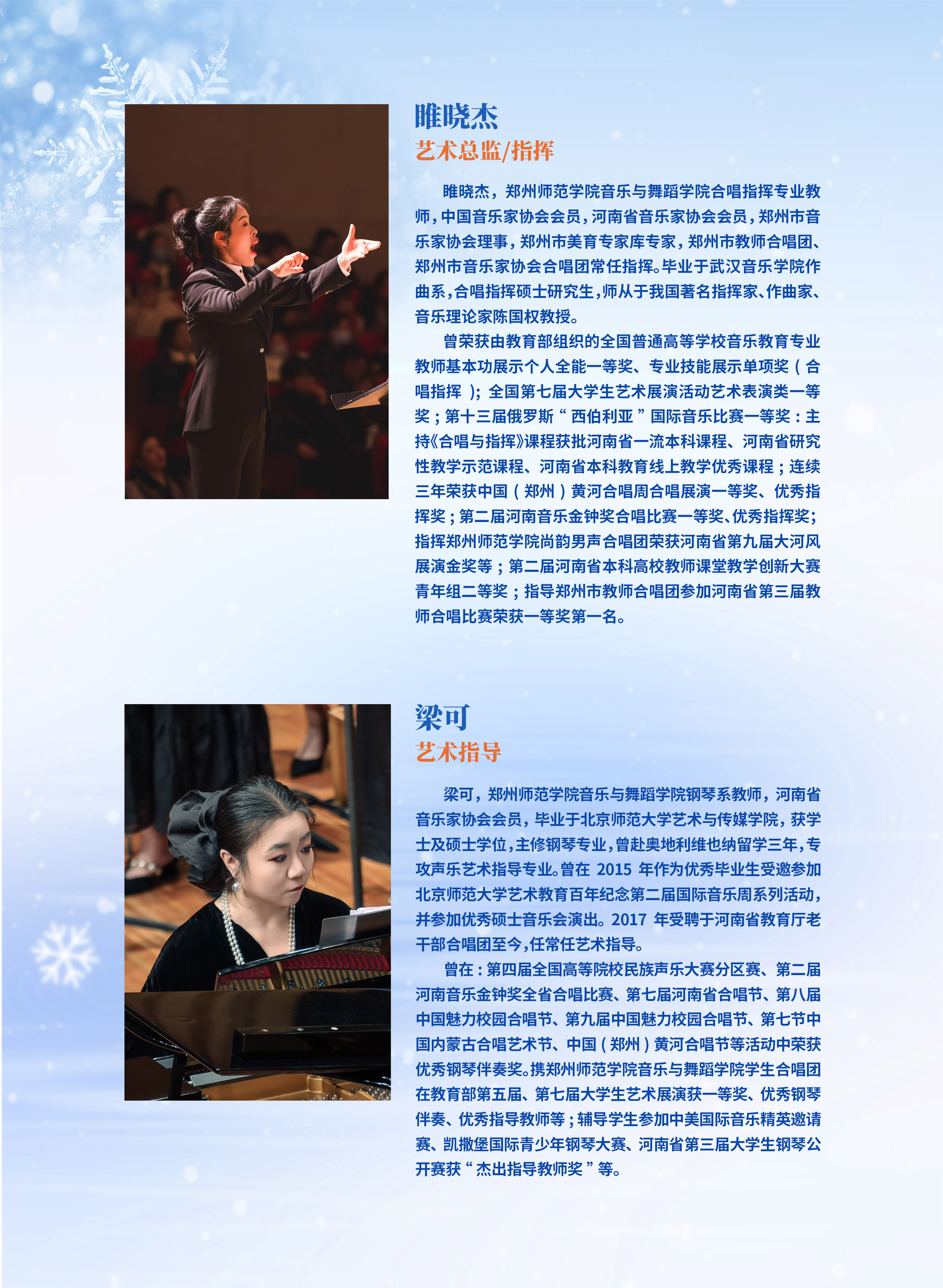 郑州晨曦室内合唱团由热爱音乐、热爱生活的“非全职”合唱爱好者组成,包括高校及中小学音乐教师、音乐专业在校生、工程师、公司职员、职业媒体人、自由职业者等。据悉,合唱团以专业化、学院派的方式进行日常训练,并联合社会各界优秀作曲家、指挥家进行创新编排,在传统多声部混声合唱的基础上融合古典、流行、爵士、戏曲等多元素风格,打造都市心灵的音乐栖息地,同时颠覆传统合唱音乐美学,为现代都市人打造独具魅力的“声音疗愈所”,用年轻化的声音艺术将“音乐厅”塑造为都市人卸下疲惫的“情绪充电站”。