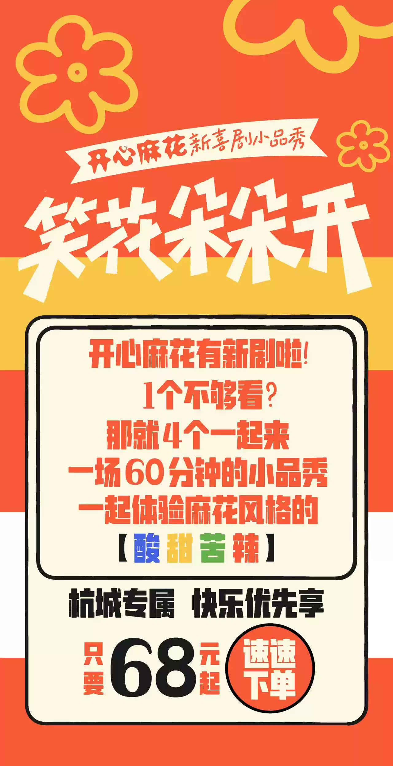 演出时间 2025-11-02 周日 19:00 演出场馆 杭州开心麻花黑匣子 演出时长 约60分钟(以现场为准) 儿童入场提示 儿童一律凭成人票入场 演出详情