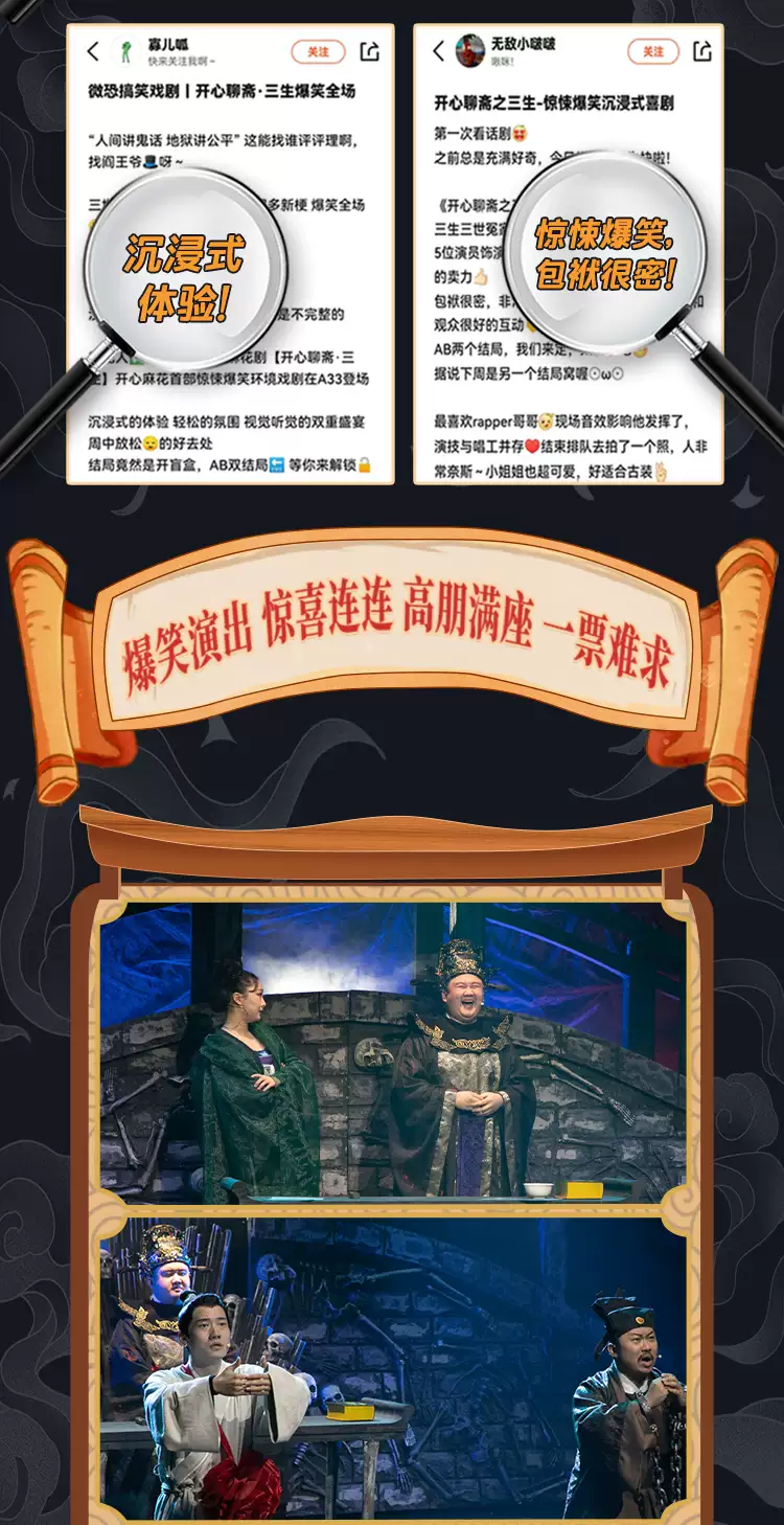 作为一部融合了惊悚、爆笑、传统文化与现代创意的戏剧作品,《开心聊斋·三生沉浸版》堪称一场地府与人间交织的欢乐盛宴!