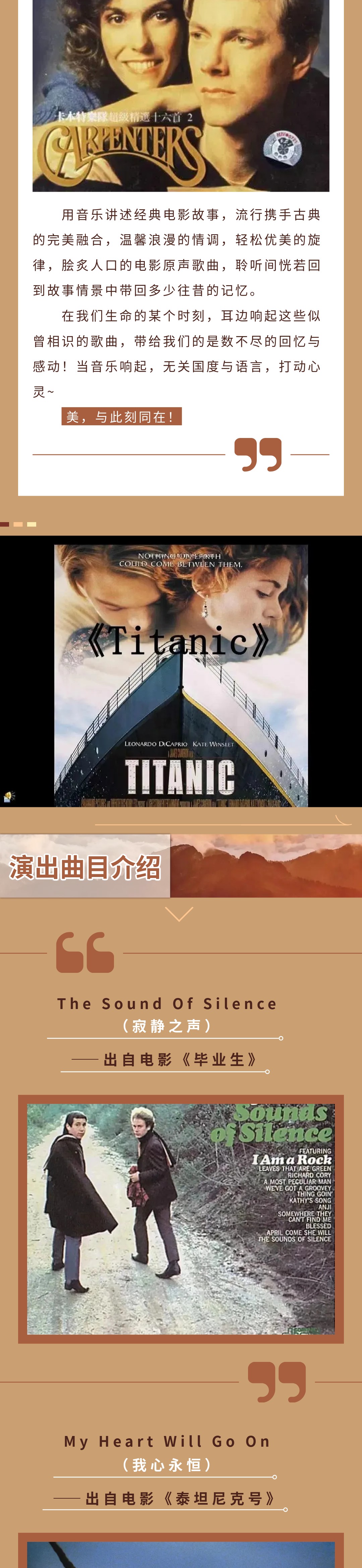 用音乐讲述经典电影故事,流行携手古典的完美融合,温馨浪漫的情调,轻松优美的旋律,脍炙人口的电影原声歌曲,聆听间恍若回到故事情景中带回多少往昔的记忆。