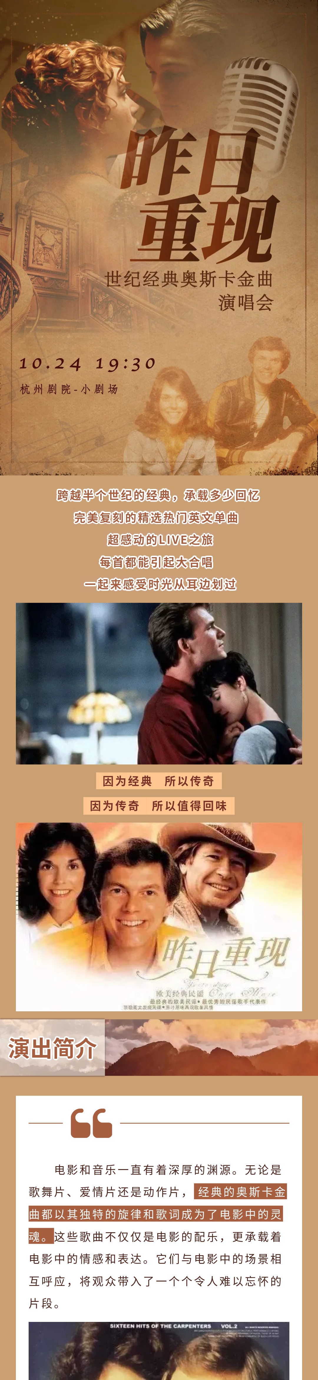 2025年10月24日,杭州剧院小剧场,《昨日重现》世纪经典奥斯卡金曲演唱会,因为经典,所以传奇,因为传奇,所以值得回味!