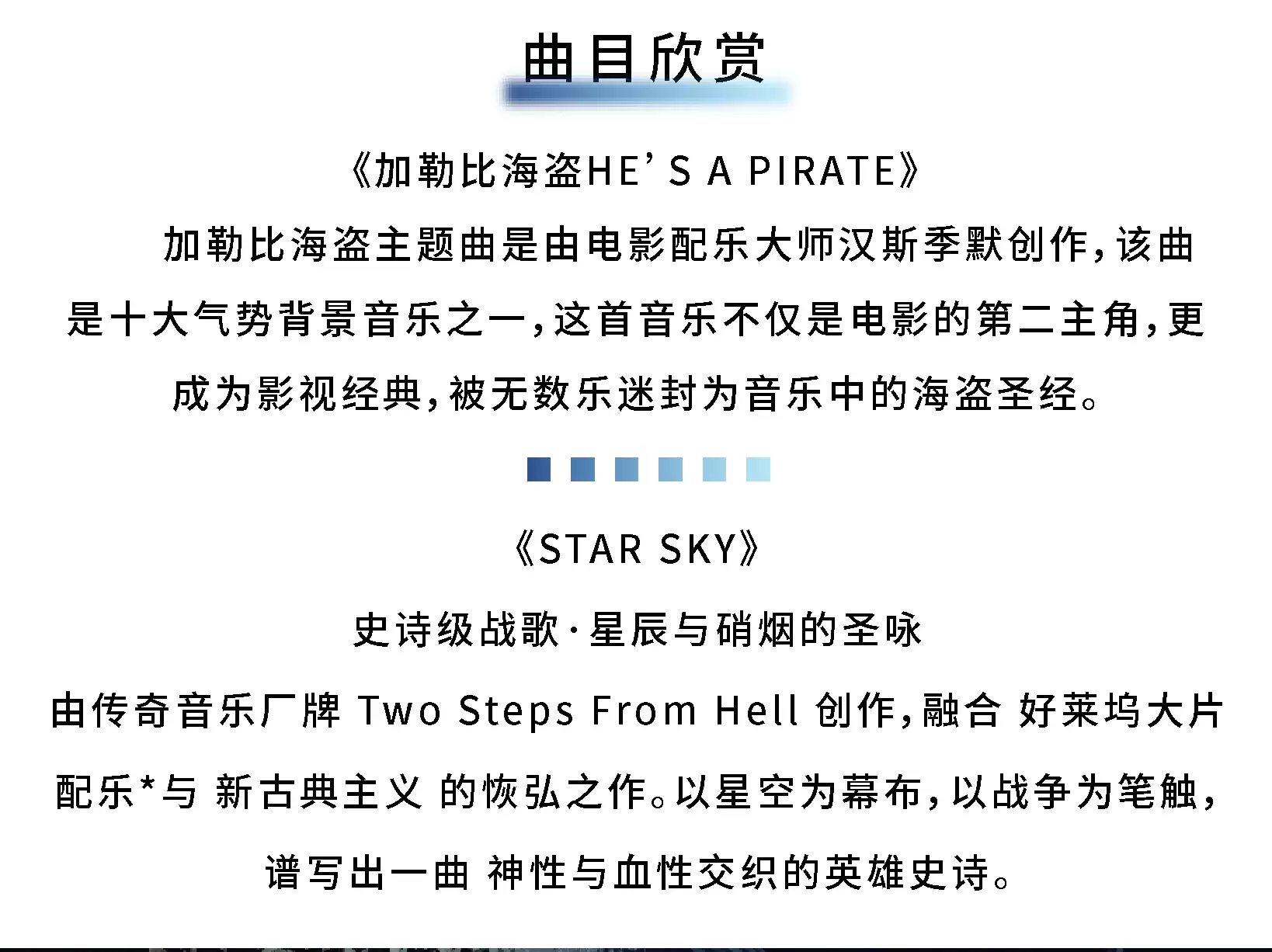 无论是杰克船长那惊心动魄的海战,亦是维斯特洛大陆为夺取铁王座的斗争,都将在此刻点燃你的热血!这是一场视觉与听觉的饕餮盛宴,更是影迷与乐迷不可错过的史诗之夜!扬帆起航,共赴这场激情澎湃的音乐冒险!