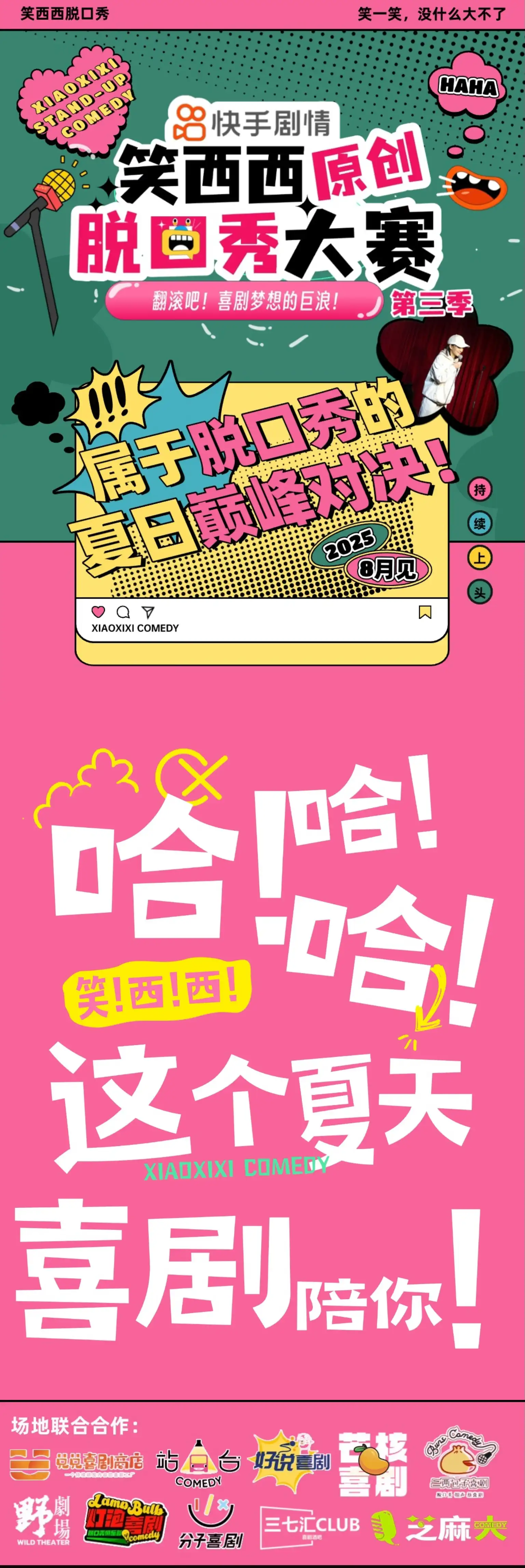 8月3日, 笑西西原创脱口秀大赛第三季将在张家口中影熹禾影城爆笑开幕。