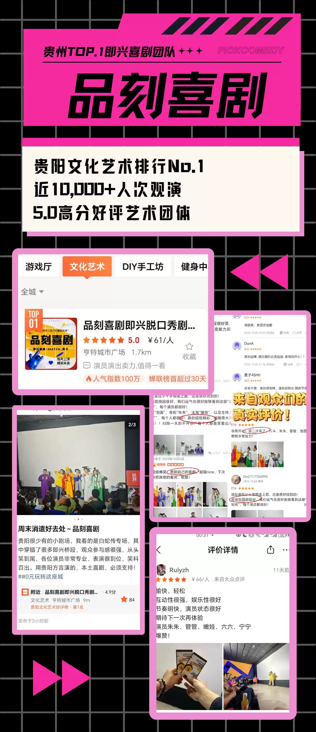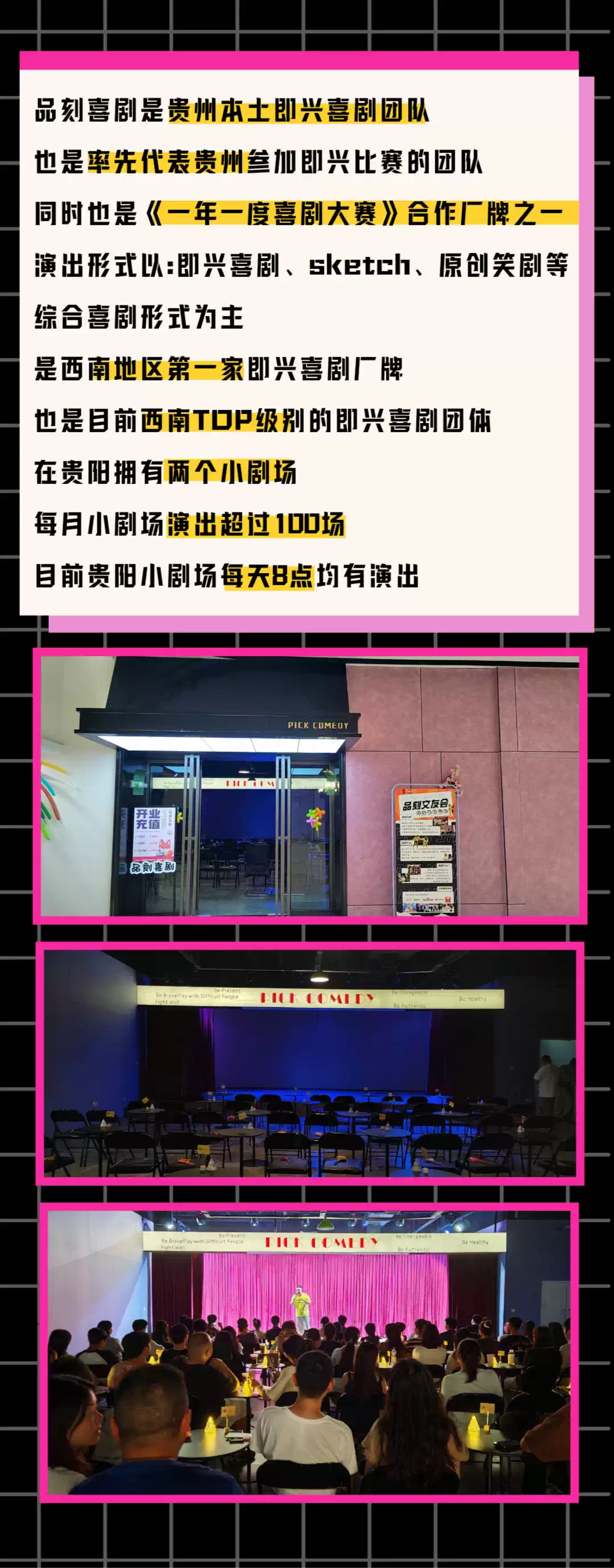 演出时间 2025.10.27-11.30 演出场馆 品刻喜剧形象店(海豚广场) 演出时长 以现场为准 儿童入场提示 未成年人需购票,不建议14岁以下入场 演出详情
