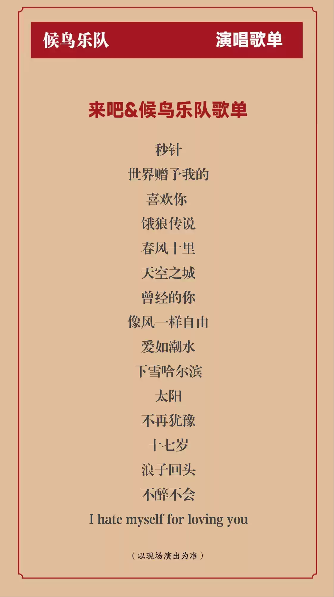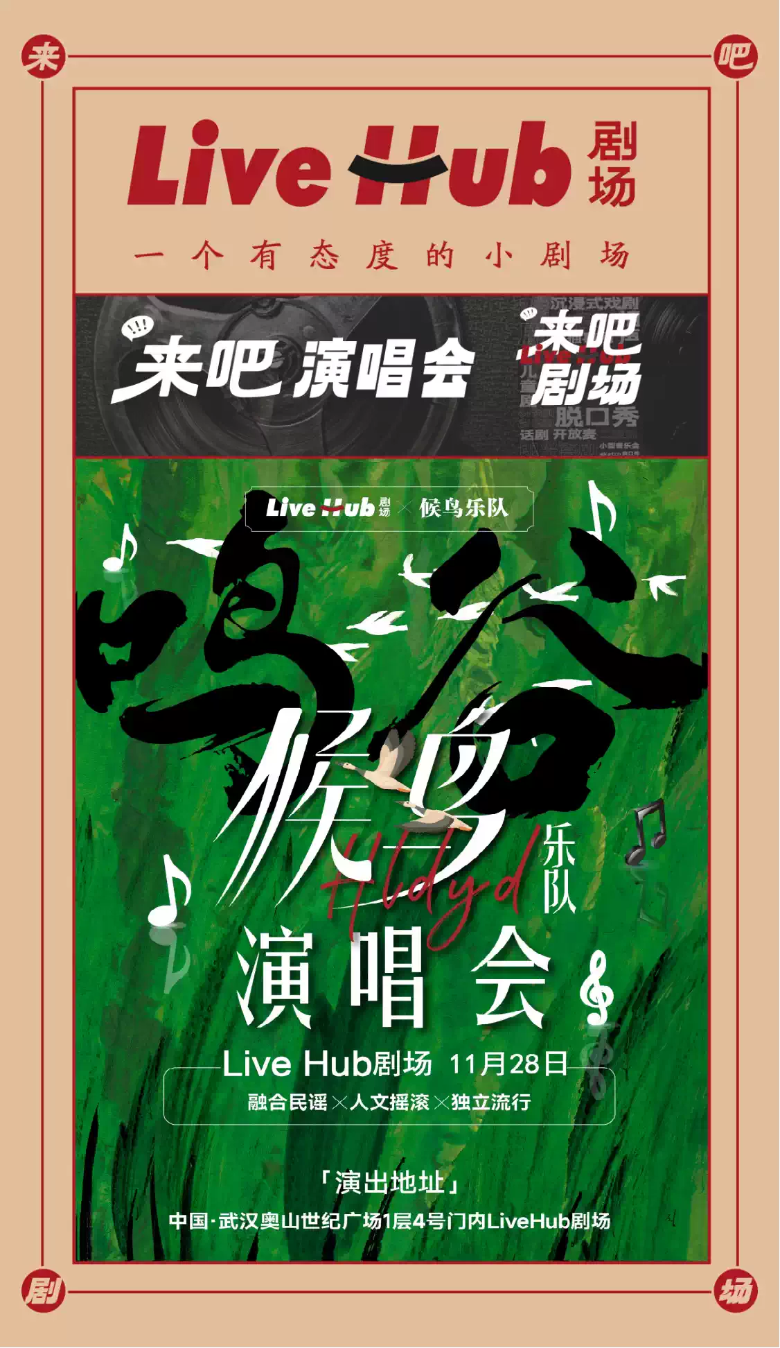 11月28日至12月26日,就在武汉LiveHub剧场,候鸟乐队“鸣谷”演唱会为你开唱诸多经典曲目,一定不能错过哦!